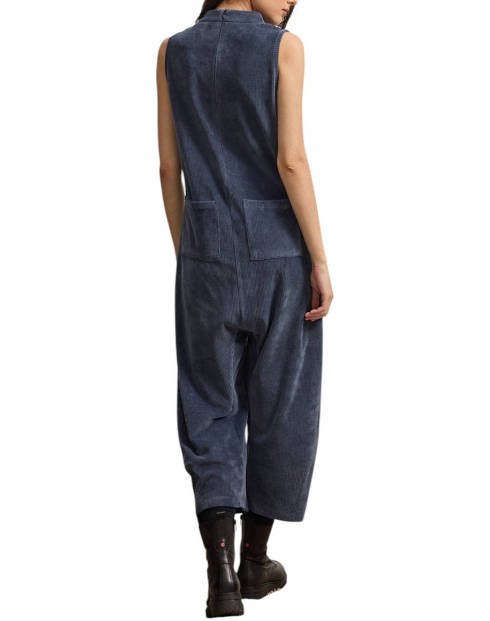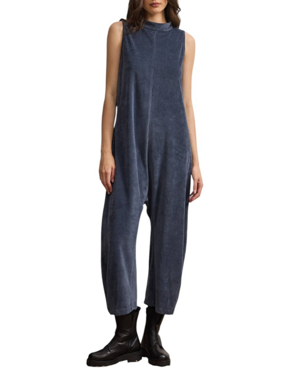Γυναικεία ολόσωμη φόρμα, μονόχρωμη, αμάνικη, με κοτλέ υφή, ψηλό γιακά, τσέπες στο πίσω μέρος και κλείσιμο με φερμουάρ στην πλάτη. (Σύνθεση: 80% Βαμβάκι,20% Πολυεστέρας)