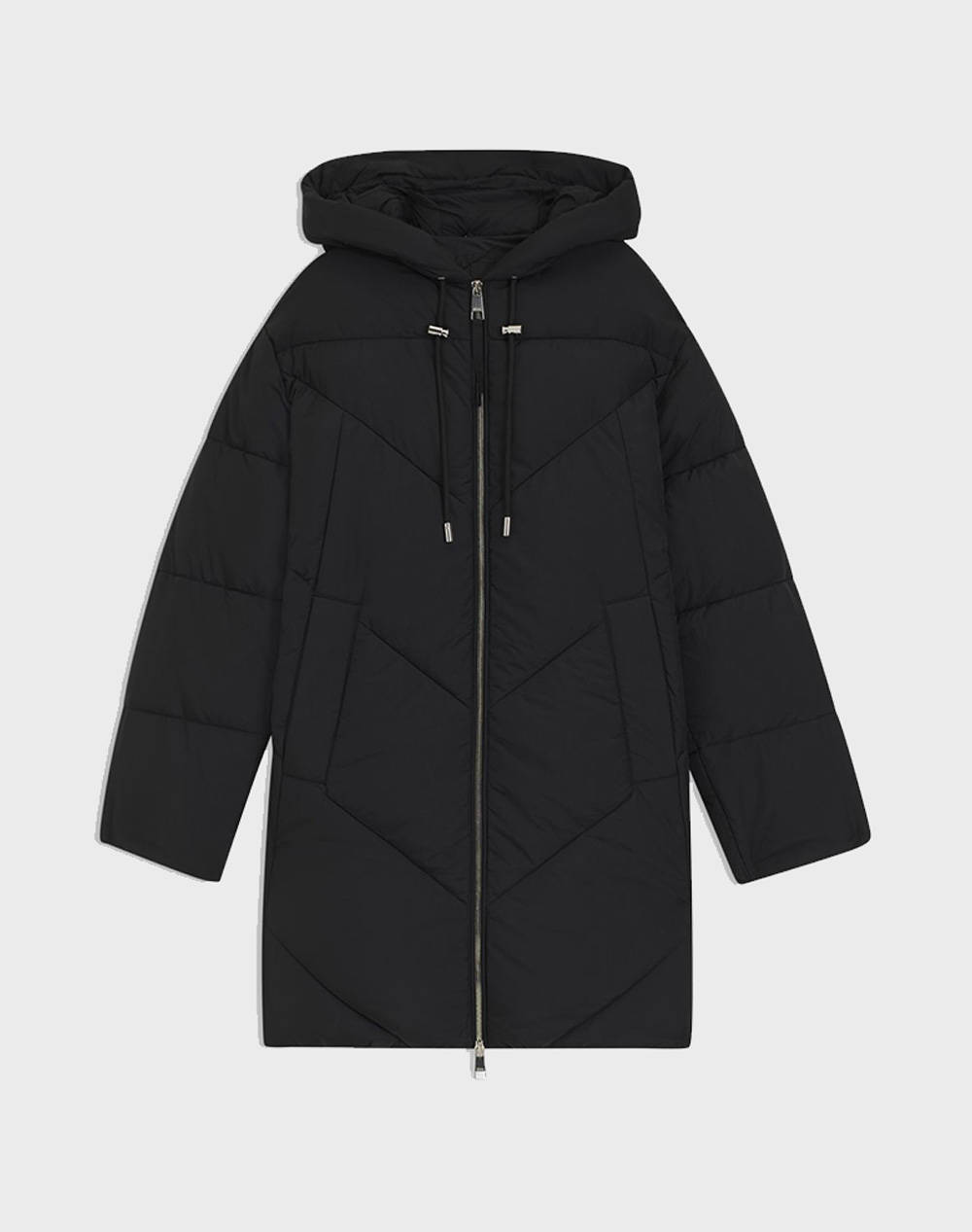 Γυναικείο μπουφάν, σε άνετη γραμμή, με καπιτονέ σχέδιο, ρυθμιζόμενη κουκούλα, πλαϊνές τσέπες και κλείσιμο μπροστά με φερμουάρ. (Σύνθεση: 100% Ανακυκλωμένο πολυαμίδιο, Φόδρα: 100% Πολυεστέρας)