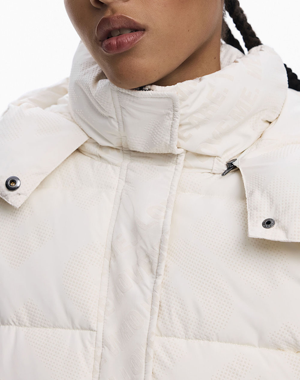 Γυναικείο μπουφάν puffer, σε κανονική γραμμή, με αποσπώμενη κουκούλα, flock σχέδιο, πλαϊνές τσέπες και κλείσιμο μπροστά με φερμουάρ και κουμπιά. (Σύνθεση: 100% Πολυεστέρας, Επένδυση: 100% Πολυεστέρας)