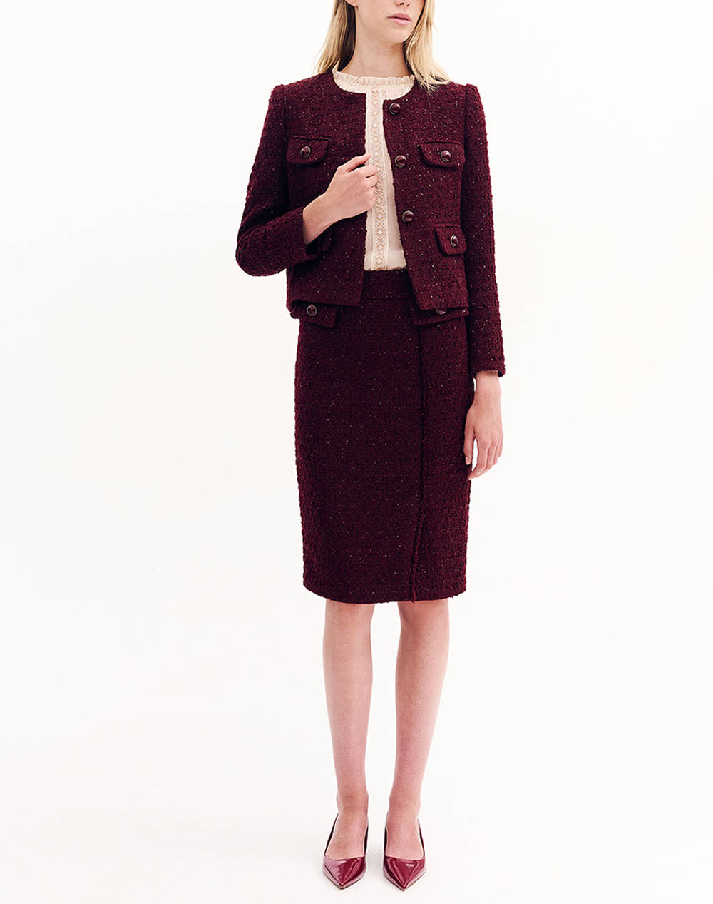 Γυναικείο tweed σακάκι από σύμμεικτο μαλλίνο ύφασμα.