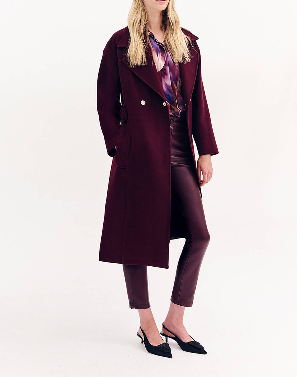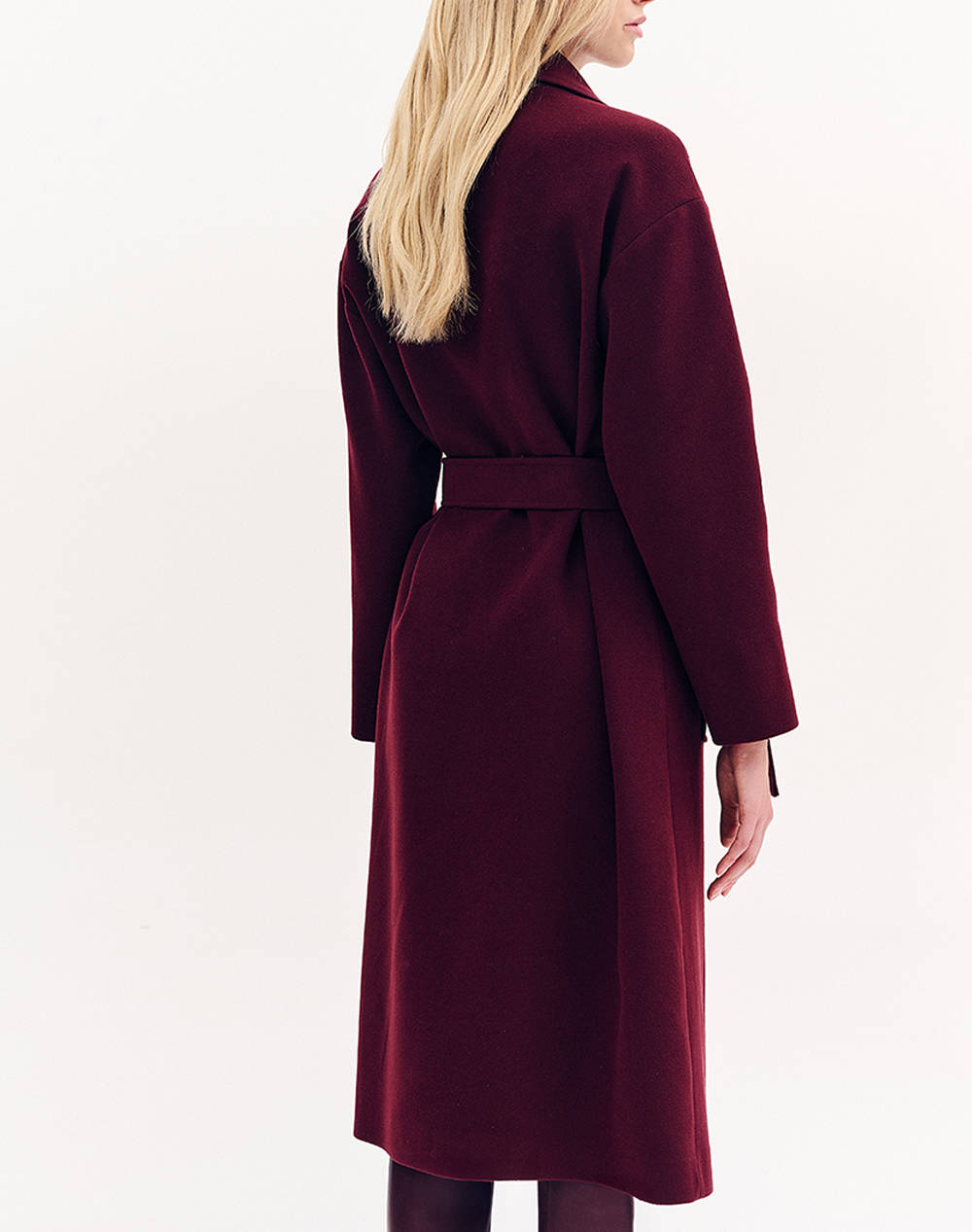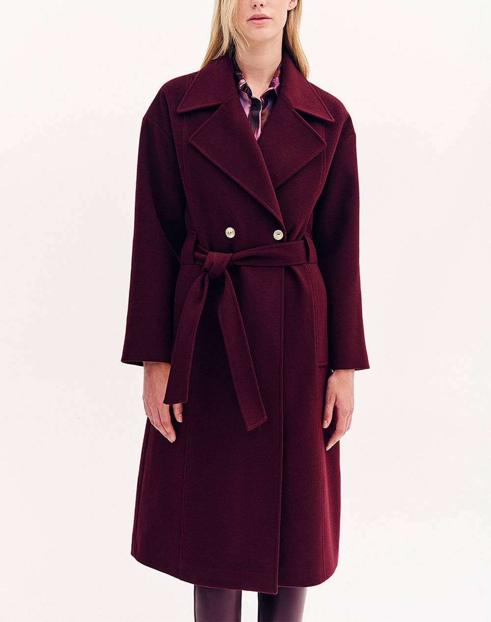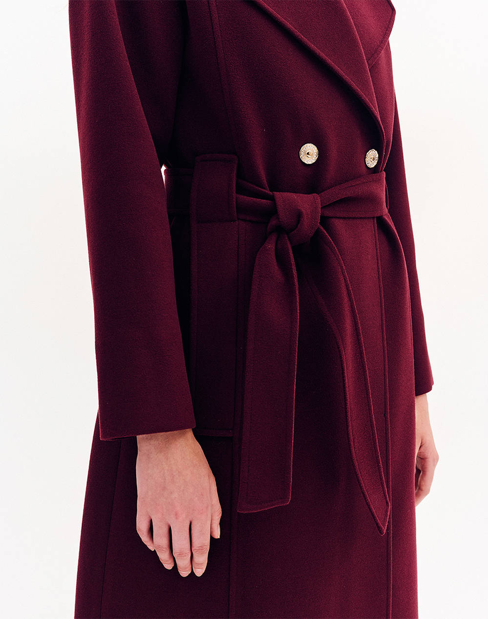 Γυναικείο παλτό, σε ίσια γραμμή, με σταυρωτό κούμπωμα, κοφτές τσέπες και ζώνη ίδιας ύφανσης στη μέση. (Σύνθεση: 100% Πολυεστέρας)
