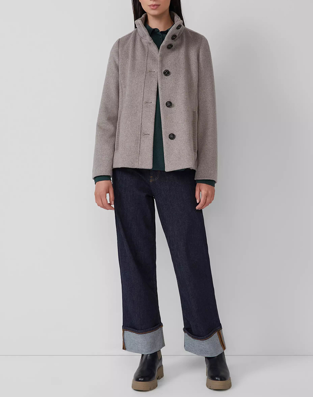Γυναικείο παλτό, σε κανονική γραμμή, μακρυμάνικο, με πλαϊνές τσέπες και μπροστινό κλείσιμο με κουμπιά. (Σύνθεση: 64% Πολυεστέρας, 34% Μαλλί, 2% Πολυαμίδιο)