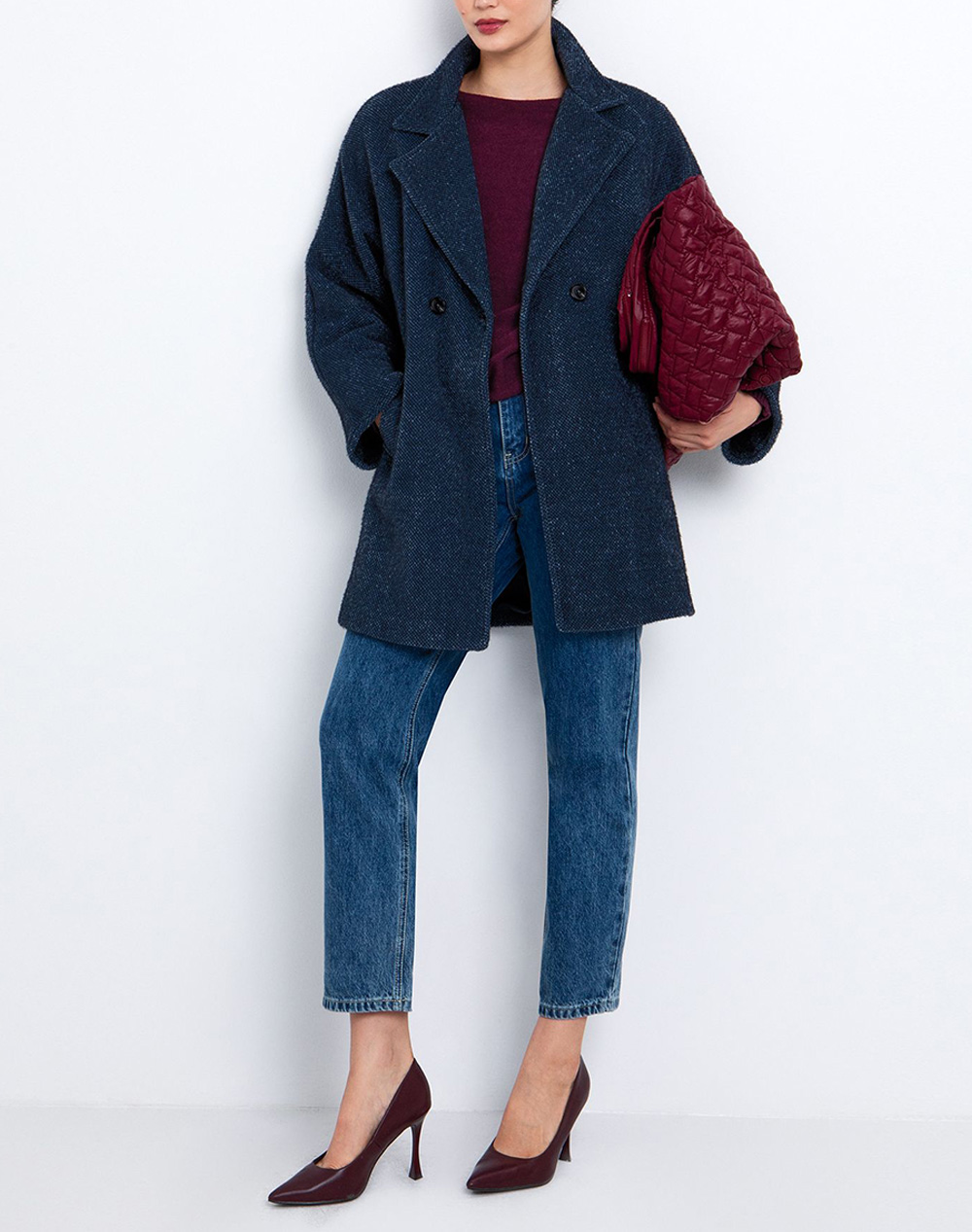 Γυναικείο παλτό, oversized, με πλαϊνές τσέπες, γιακά πέτο και σταυρωτό κλείσιμο με κουμπιά. (Σύνθεση: 82% Πολυεστέρας, 18% Πολυαμίδιο)