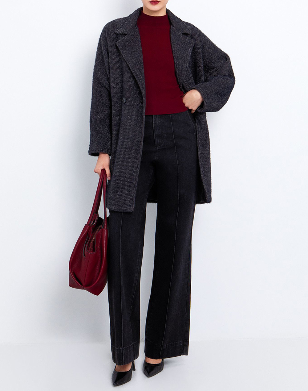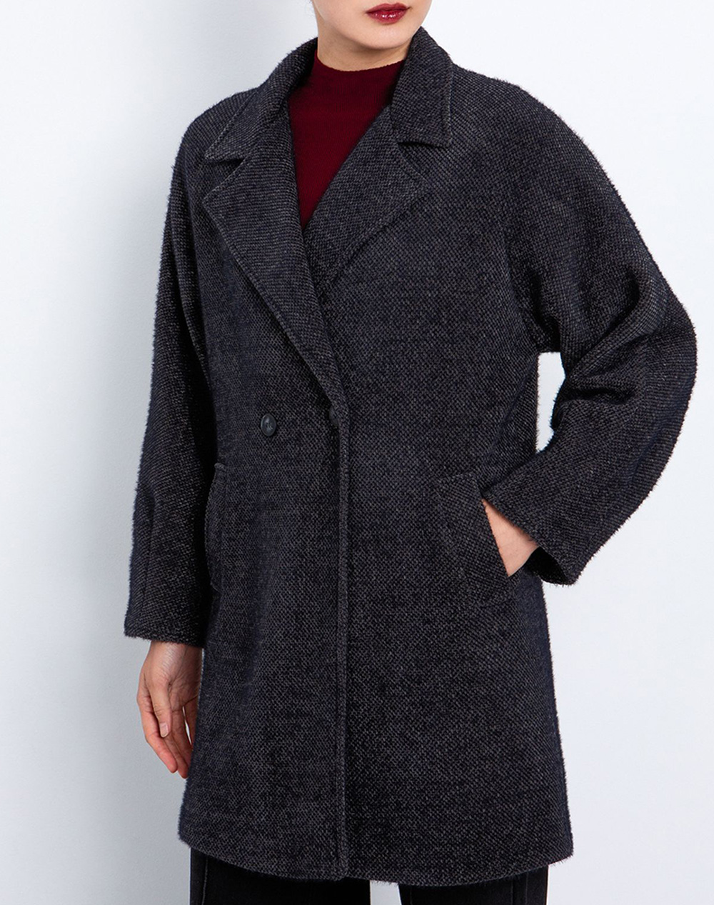 Γυναικείο παλτό, oversized, με πλαϊνές τσέπες, γιακά πέτο και σταυρωτό κλείσιμο με κουμπιά. (Σύνθεση: 82% Πολυεστέρας, 18% Πολυαμίδιο)
