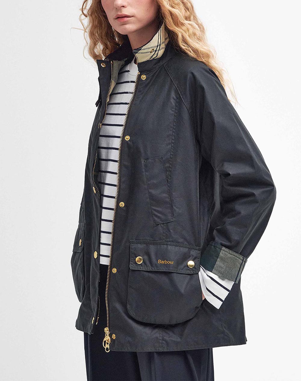 Γυναικείο μπουφάν, σε κανονική γραμμή, με κοτλέ γιακά, μπροστινές τσέπες και κλείσιμο με φερμουάρ και κουμπιά. (Σύνθεση: 100% Κερωμένο βαμβάκι, Επένδυση: 65% Πολυεστέρας, 35% Βαμβάκι)