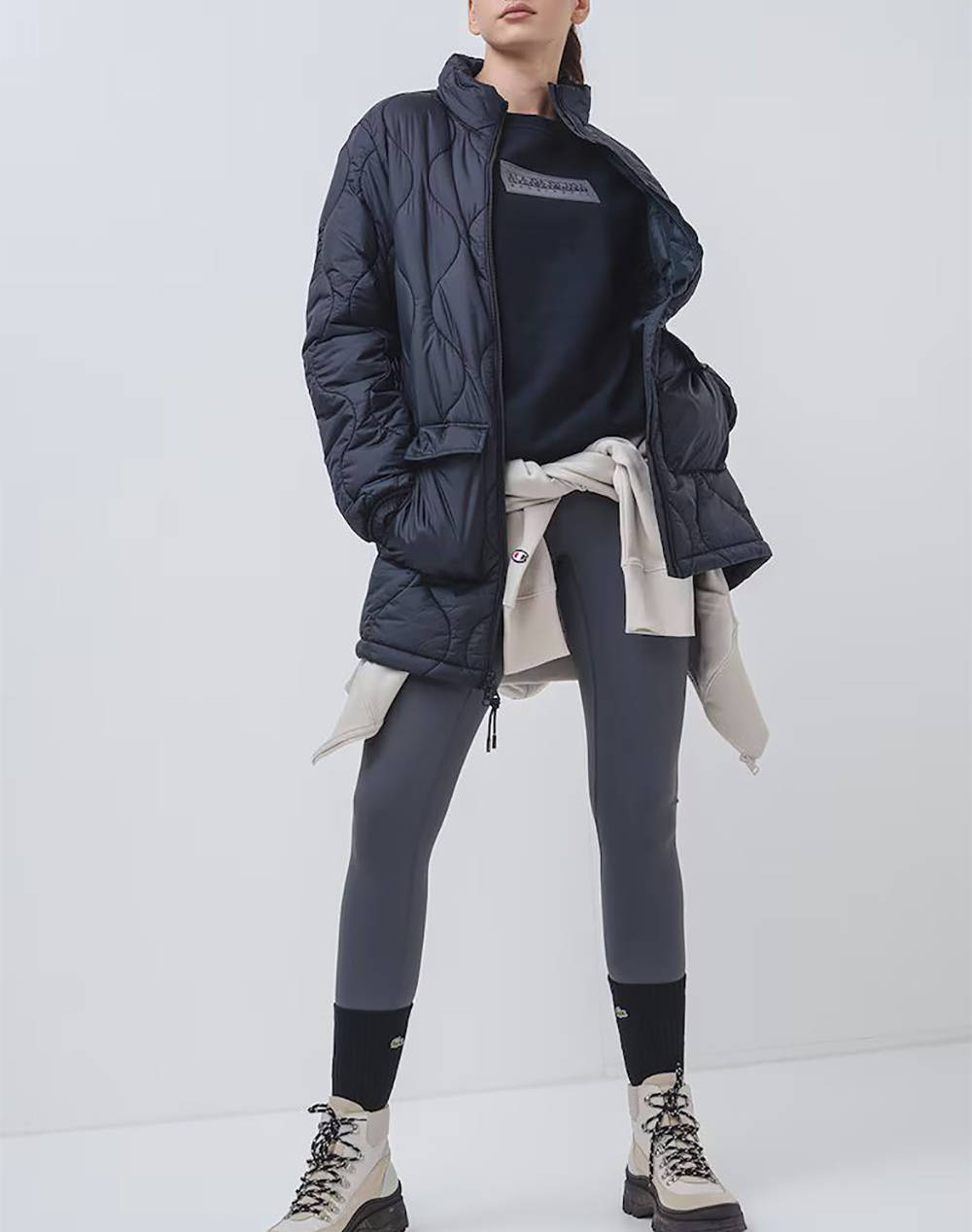 Μπουφάν, σε κανονική γραμμή, με καπιτονέ σχέδιο, μπροστινές τσέπες, ψηλό γιακά και κλείσιμο κατά μήκος με φερμουάρ. (Σύνθεση: 100% Πολυεστέρας)