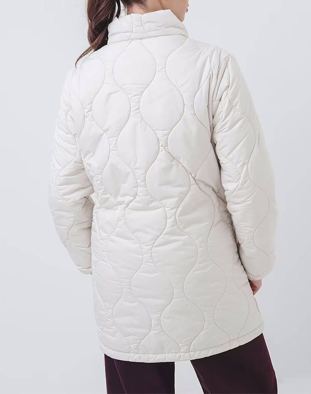 Μπουφάν, σε κανονική γραμμή, με καπιτονέ σχέδιο, μπροστινές τσέπες, ψηλό γιακά και κλείσιμο κατά μήκος με φερμουάρ. (Σύνθεση: 100% Πολυεστέρας)
