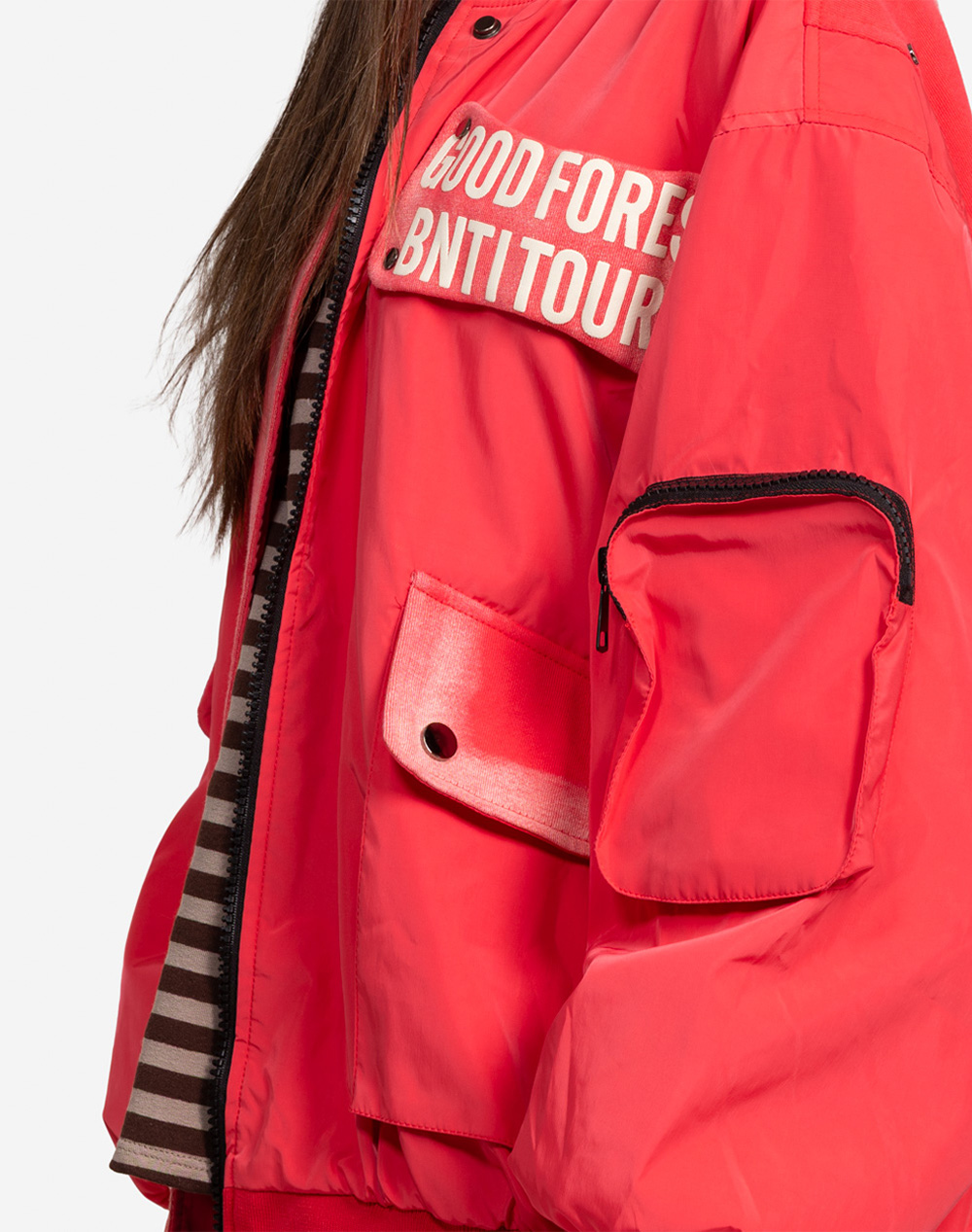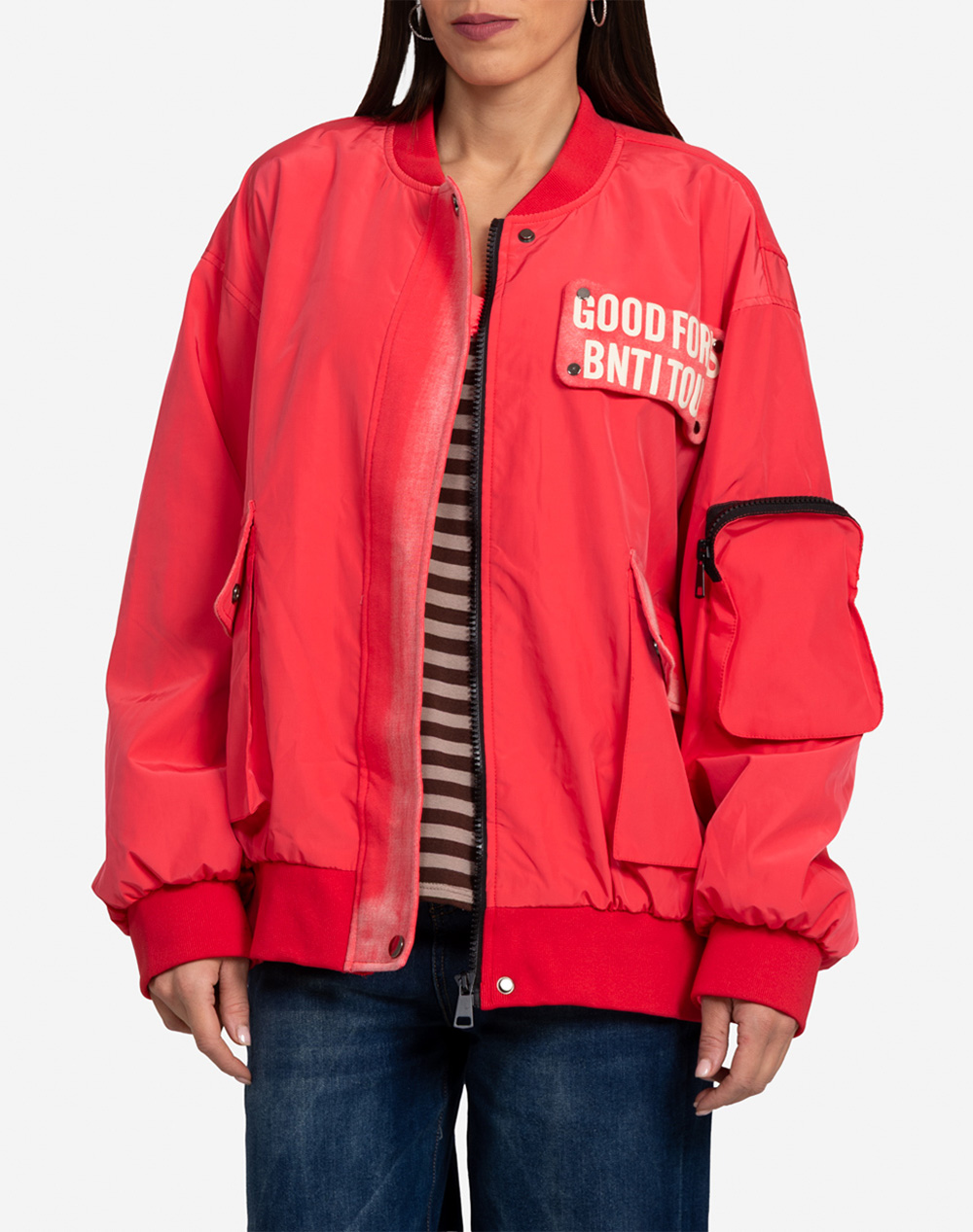 Γυναικείο μπουφάν, σε γραμμή oversized, με ελαστικές μανσέτες και τελείωμα. Διαθέτει μπροστινές τσέπες και μία τσέπη στο μανίκι, και κλείνει κατά μήκος με φερμουάρ. Περιφέρεια στήθους 125εκ. (Σύνθεση: Συνθετικό ύφασμα)