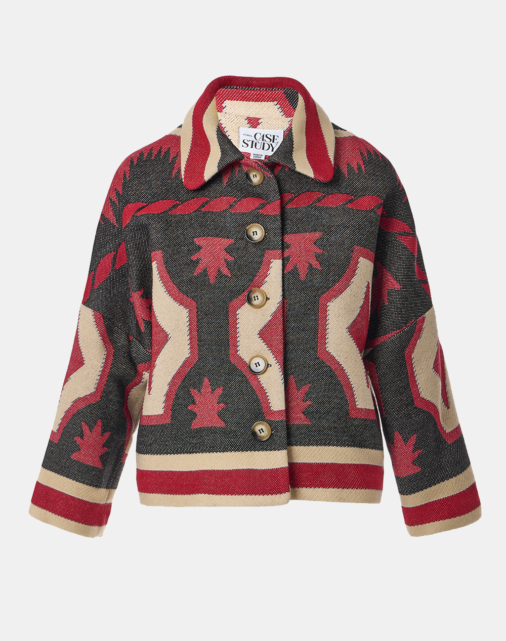 Γυναικείο κοντό παλτό, με πολύχρωμα σχέδια, γιακά και κλείσιμο μπροστά με κουμπιά. (Σύνθεση: 50% Βαμβάκι, 50% Ακρυλικό)