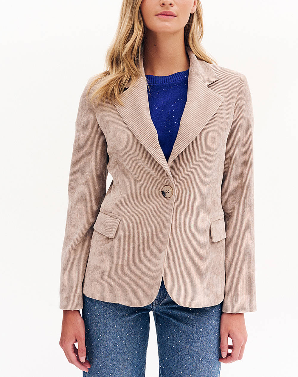 Γυναικείο κοτλέ σακάκι, μονόκουμπο, διαθέτει γιακά με πέτο και βάτες και τσέπες μπροστά με καπάκι. (Σύνθεση: 82% Πολυεστέρας, 15% Νάλον, 3% Σπαντέξ)