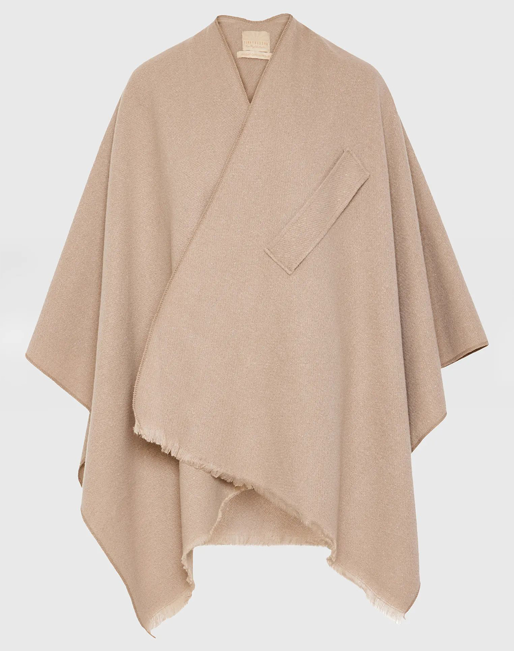 Γυναικεία κάπα, με ασύμμετρο τελείωμα και ξέφτια. (Σύνθεση: 100% Πολυεστέρας)