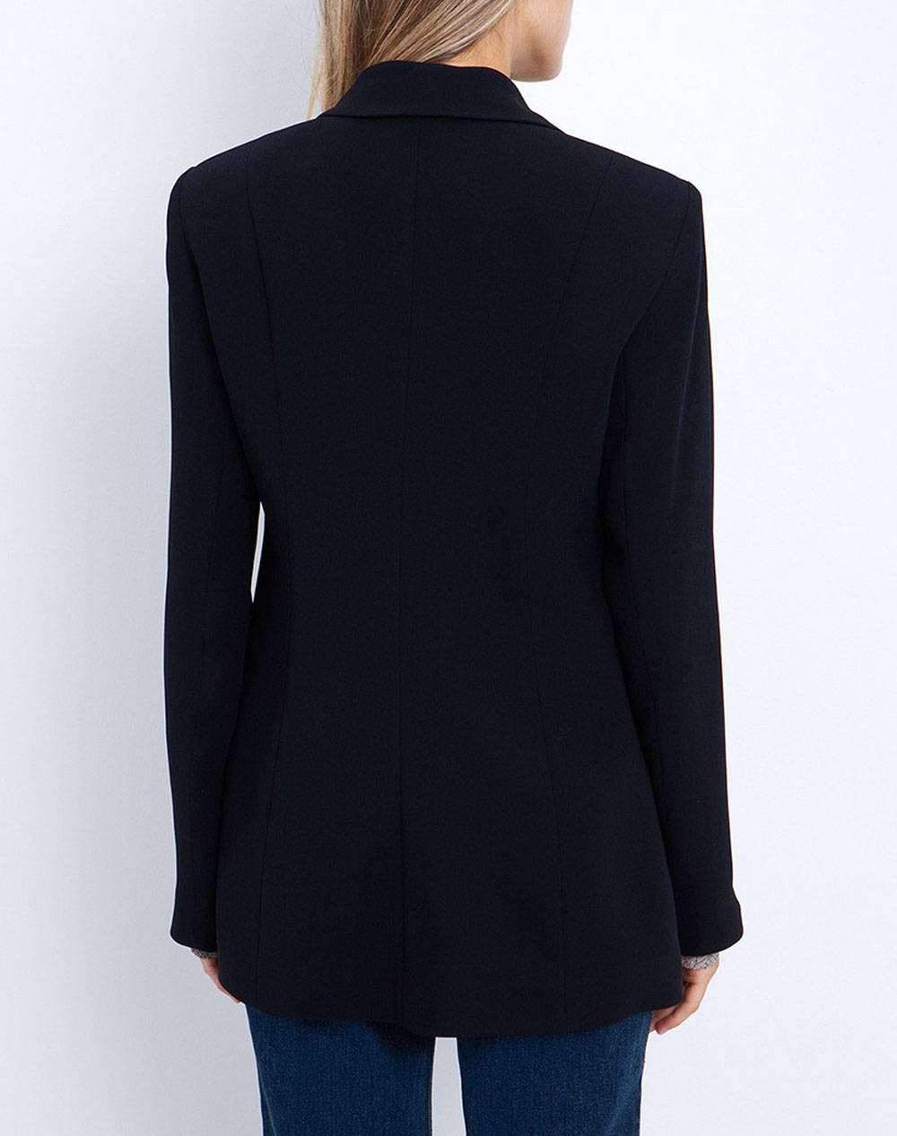 Γυναικείο σακάκι mid length, σε ισια γραμμή, με τονισμένους ώμους και κλείσιμο με ασορτί κουμπί. (Σύνθεση: 100% Πολυεστέρας)