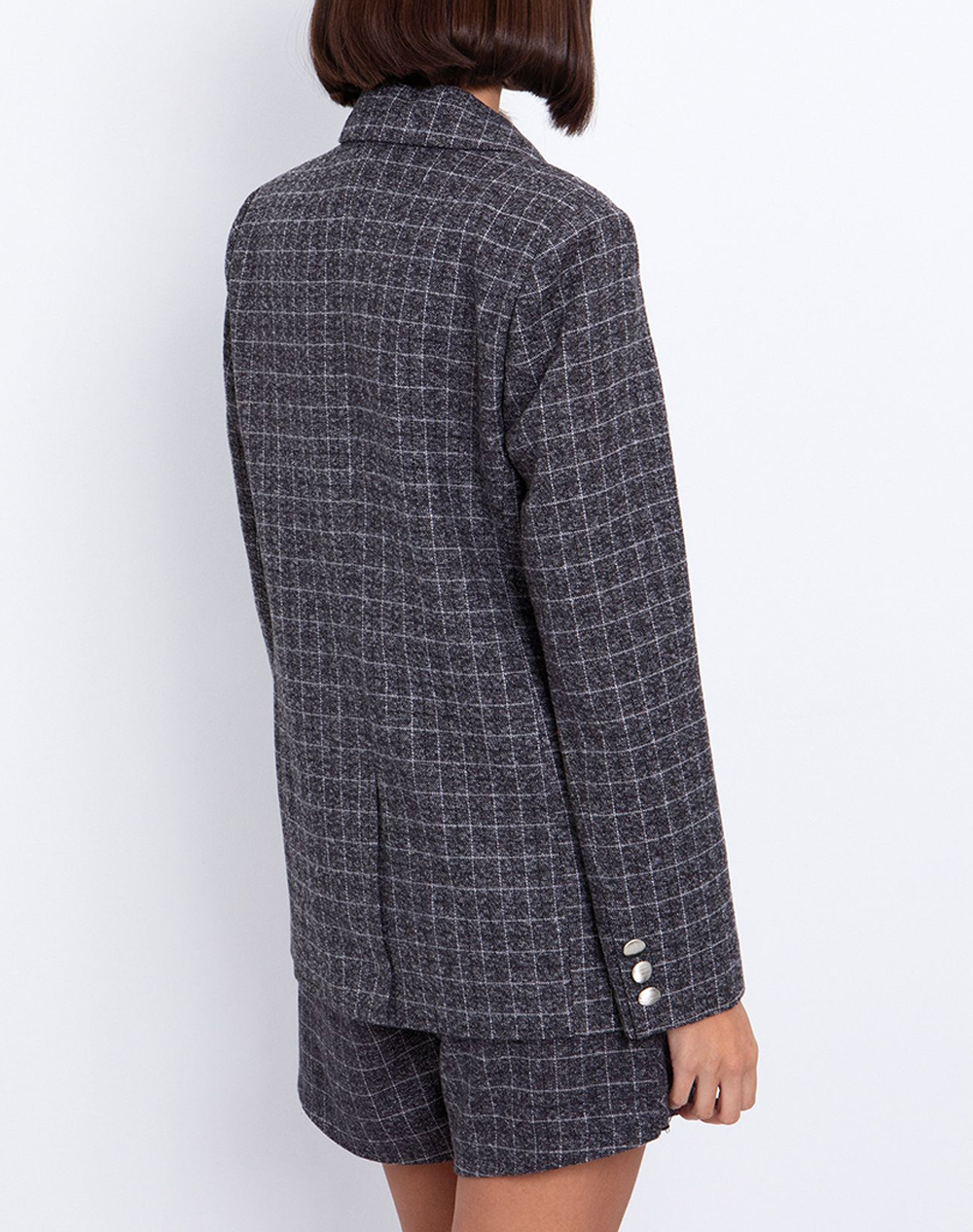 Γυναικείο σακάκι, σε εφαρμοστή, μεσάτη γραμμή, με καρό μοτίβο, μπροστινές τσέπες και κλείσιμο με κουμπί μπροστά. (Σύνθεση: 80% Πολυεστέρας, 20% Βισκόζη)