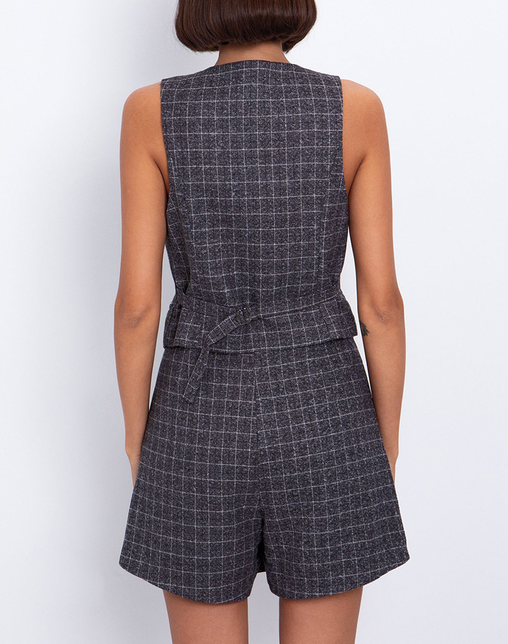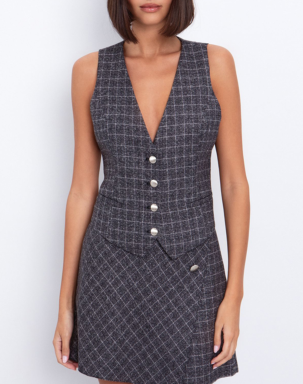 Γυναικείο γιλέκο, σε κανονική γραμμή, με καρό μοτίβο, λαιμόκοψη V και κλείσιμο με κουμπιά.(Σύνθεση: 80% Πολυεστέρας, 20% Βισκόζη)