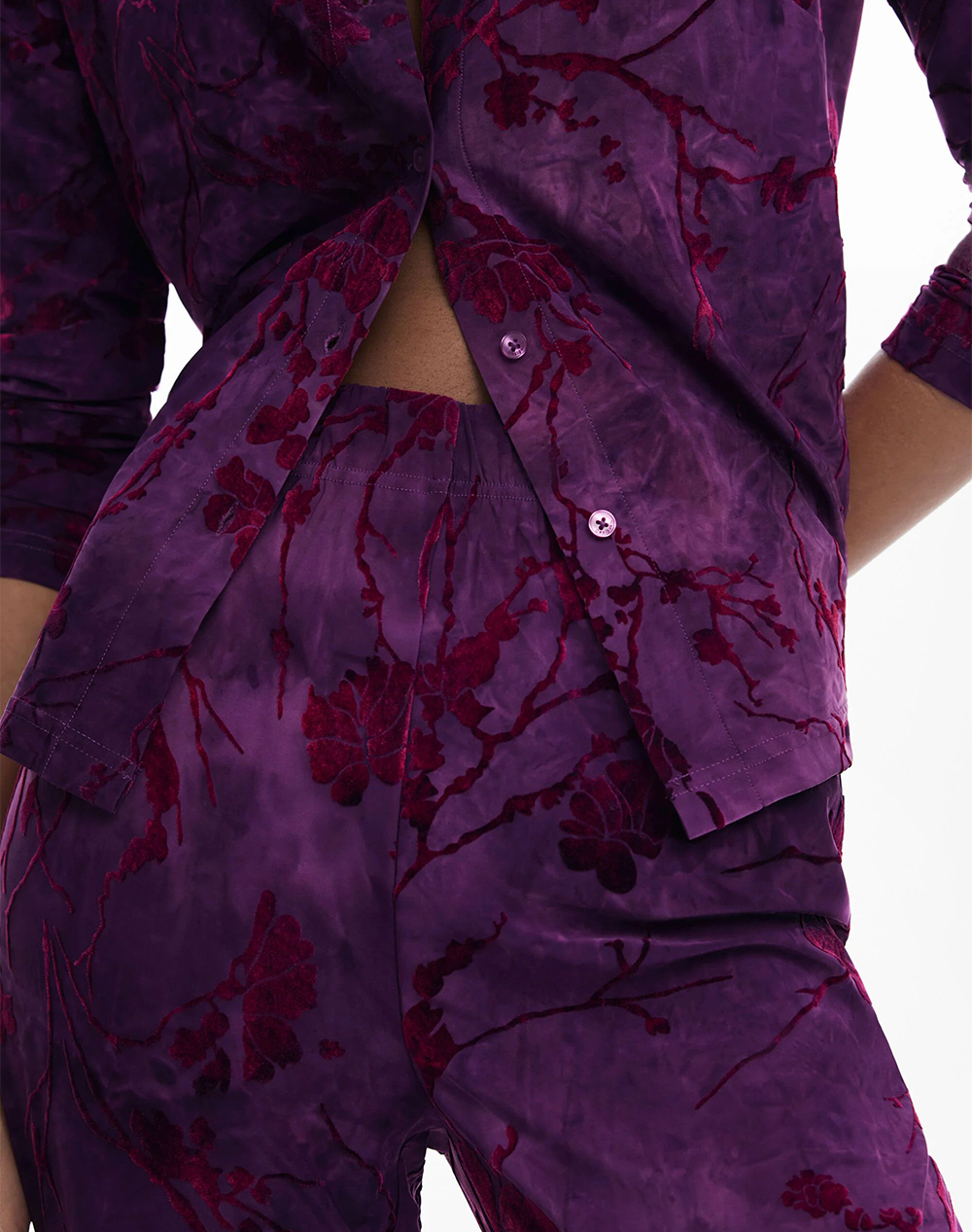 Γυναικείο παντελόνι, σε flared γραμμή, με ελαστική μέση και ανάγλυφα φλοράλ μοτίβα σε όλο το ένδυμα. (Σύνθεση: 94% Πολυεστέρας, 6% Ελαστάνη)