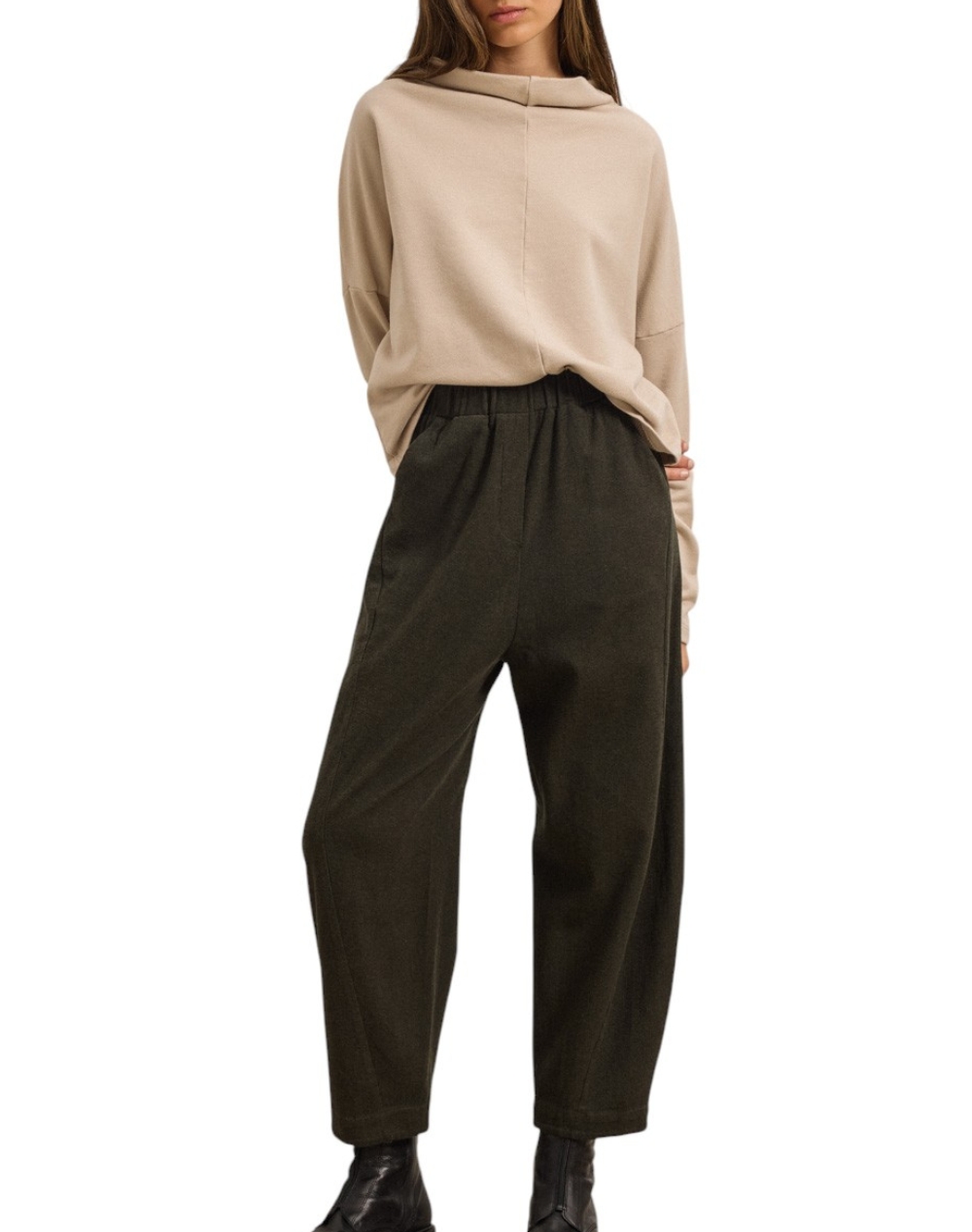 Γυναικείο παντελόνι, σε άνετη γραμμή, με πλαϊνές και πίσω τσέπες και ελαστική μέση. (Σύνθεση: 100% Βαμβάκι)
