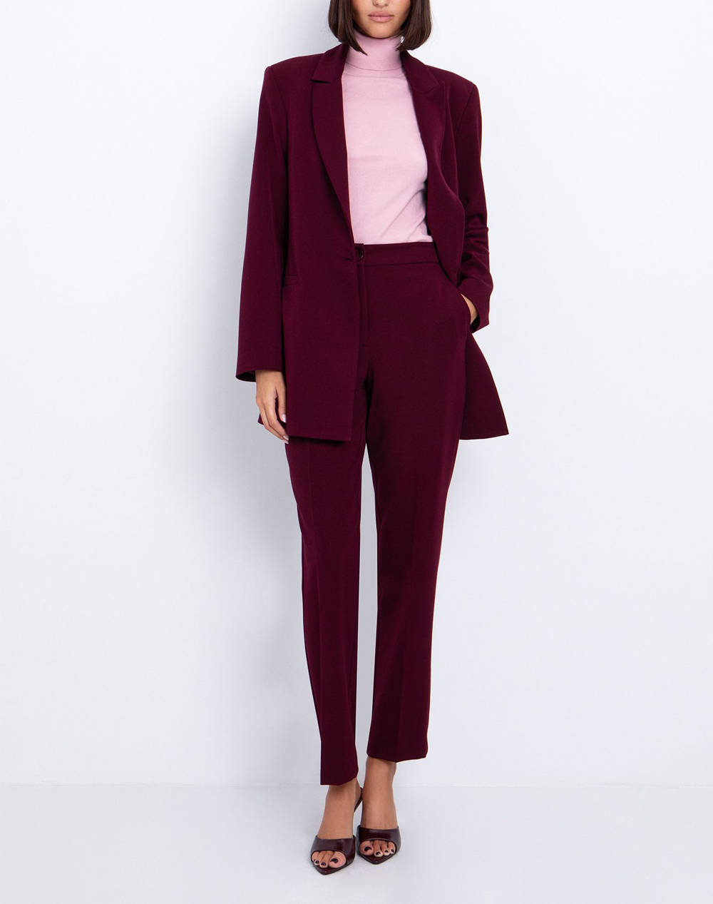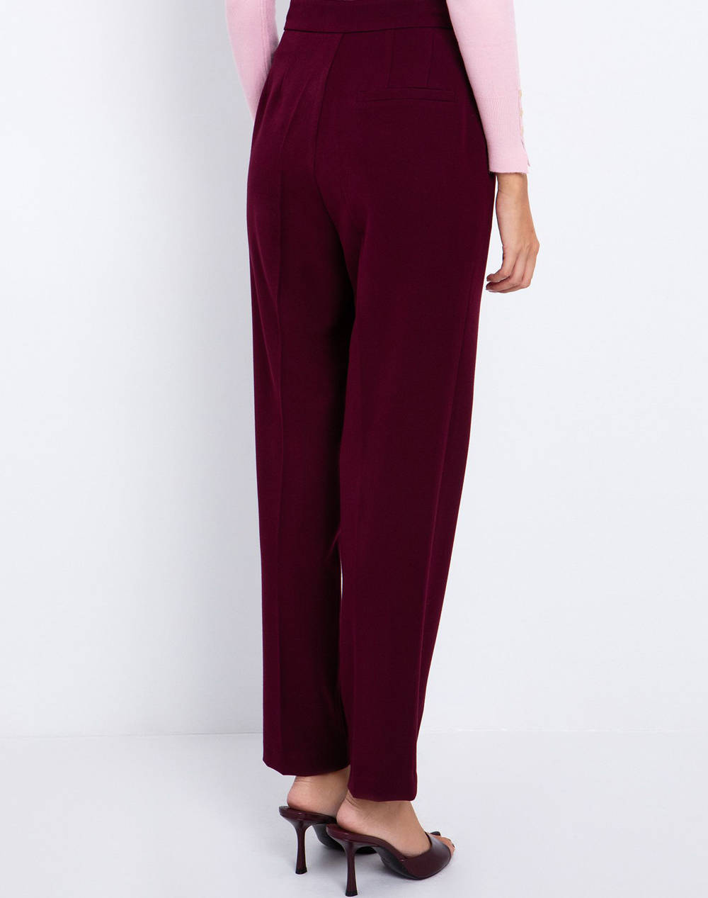 Γυναικείο παντελόνι, μονόχρωμο, ψηλόμεσο, σε ίσια γραμμή, με τσέπες στο πλάι και κλείσιμο με ασορτί κουμπί και φερμουάρ. (Σύνθεση: 97% Πολυεστέρας, 17% Βισκόζη, 6% Ελαστάνη)