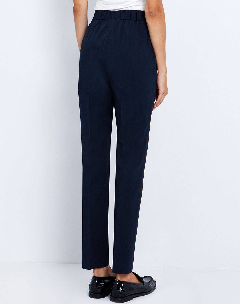 Γυναικείο παντελόνι, σε κανονική γραμμή, ψηλόμεσο, με πλαϊνές τσέπες, λάστιχο με σούρες στο πίσω μέρος της μέσης και κλείσιμο με φερμουάρ και κουμπί. (Σύνθεση: 62% Βαμβάκι, 33% Πολυεστέρας, 5% Ελαστάνη)