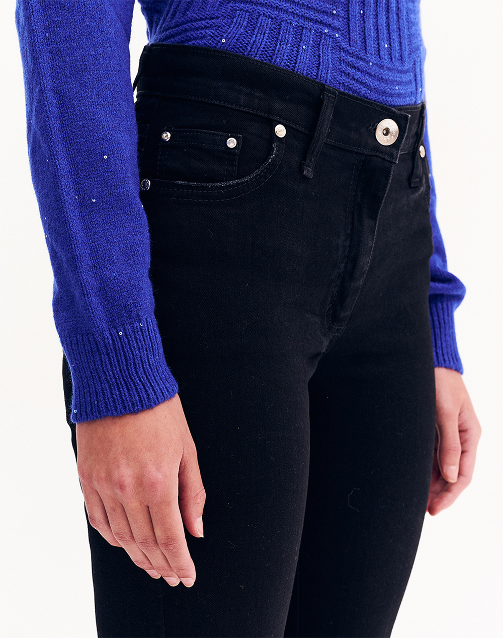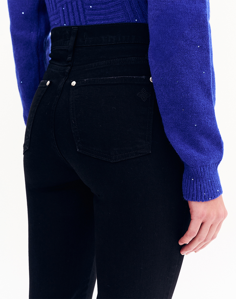 Γυναικείο jean παντελόνι, σε κανονική γραμμή, σε στυλ καμπάνα, με πεντάτσεπο σχέδιο και κλείσιμο με φερμουάρ και κουμπί. (Σύνθεση: 99% Βαμβάκι, 1% Ελαστάνη)
