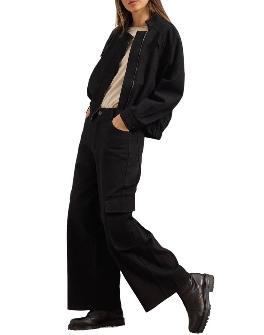 Γυναικείο παντελόνι cargo, σε κανονική, ίσια γραμμή, με πλαϊνές και πίσω τσέπες, cargo τσέπες στα πλάγια και κλείσιμο με φερμουάρ και κουμπί. (Σύνθεση: 100% Βαμβάκι)