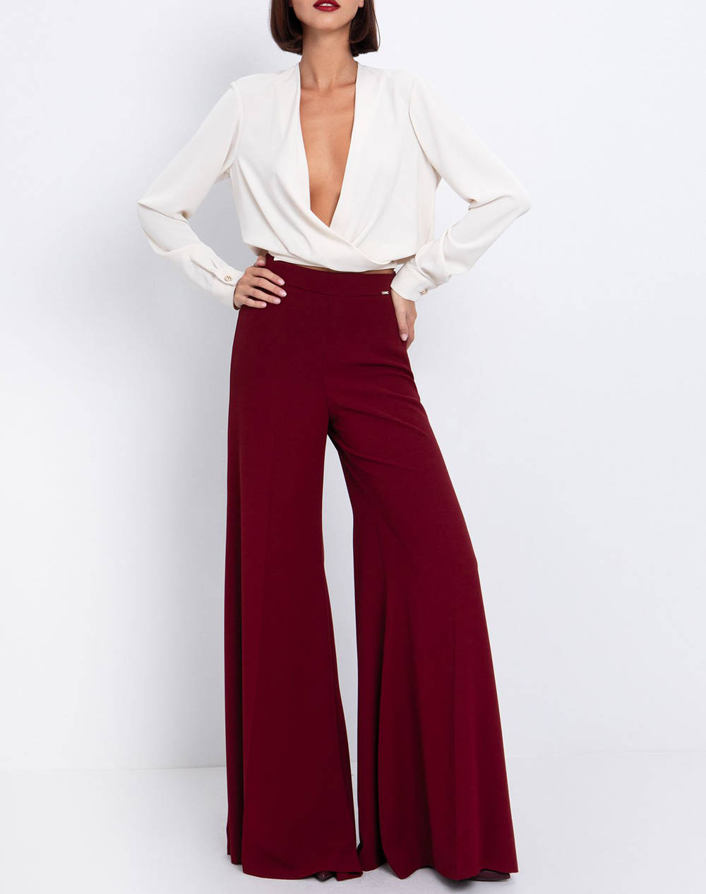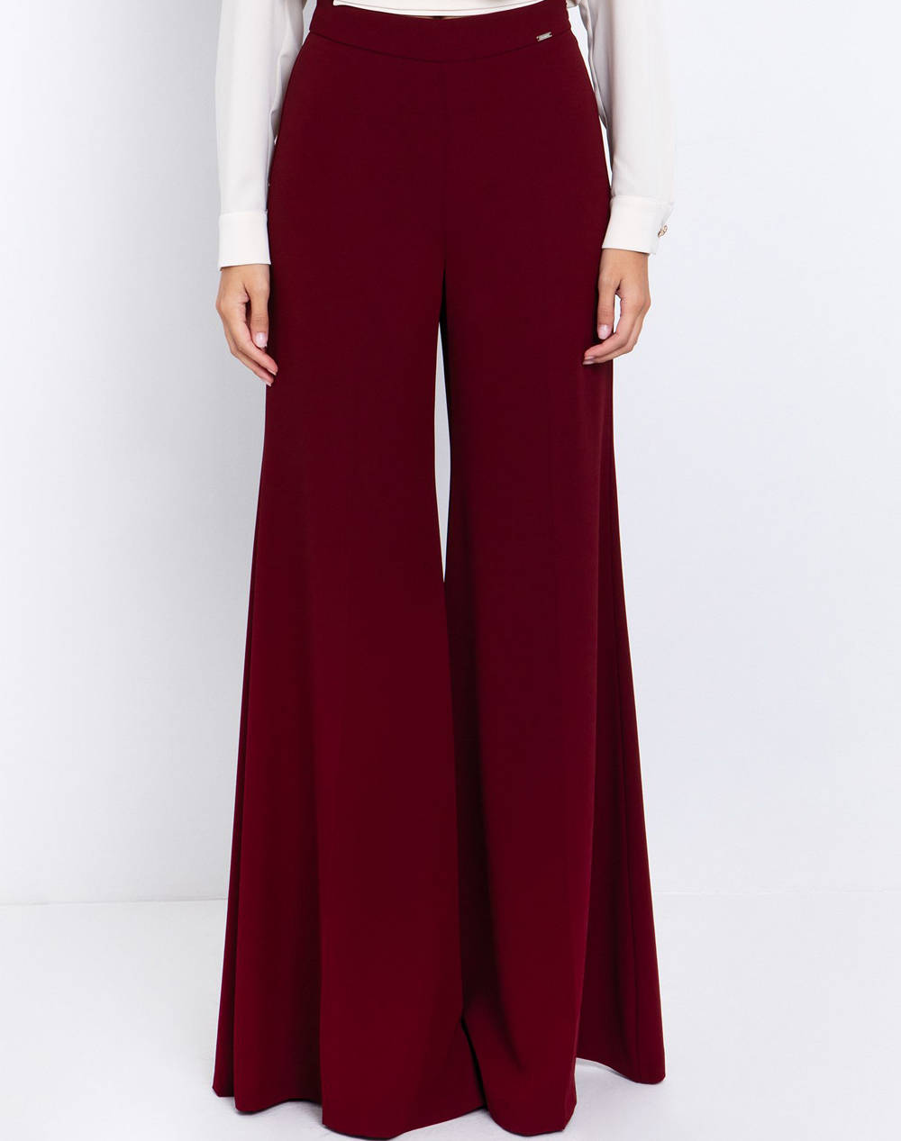 Γυναικείο παντελόνι, ψηλόμεσο, μονόχρωμο, με σχέδιο καμπάνα και κρυφό φερμουάρ στο πλάϊ. (Σύνθεση: 100% Πολυεστέρας)