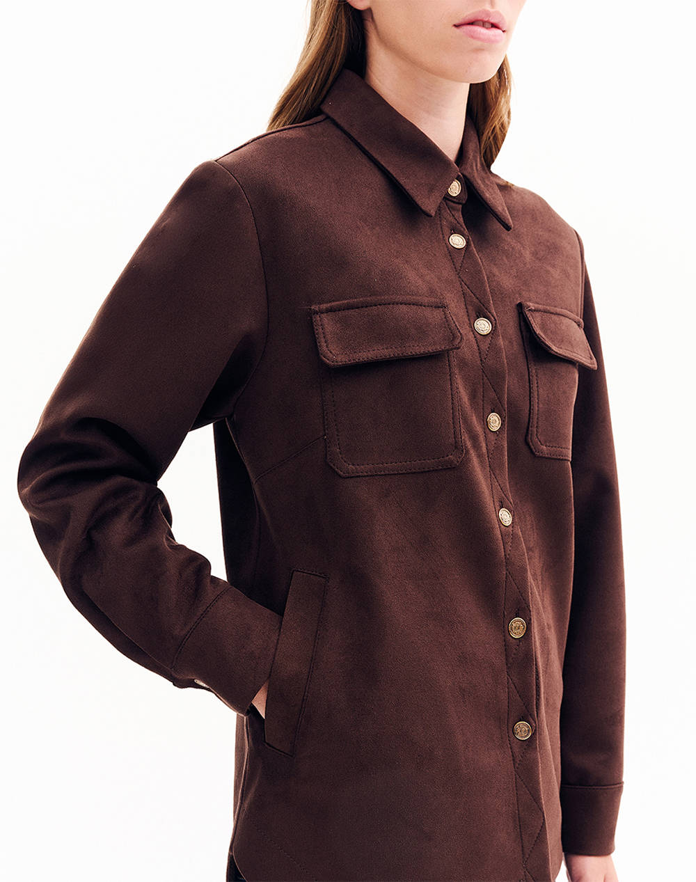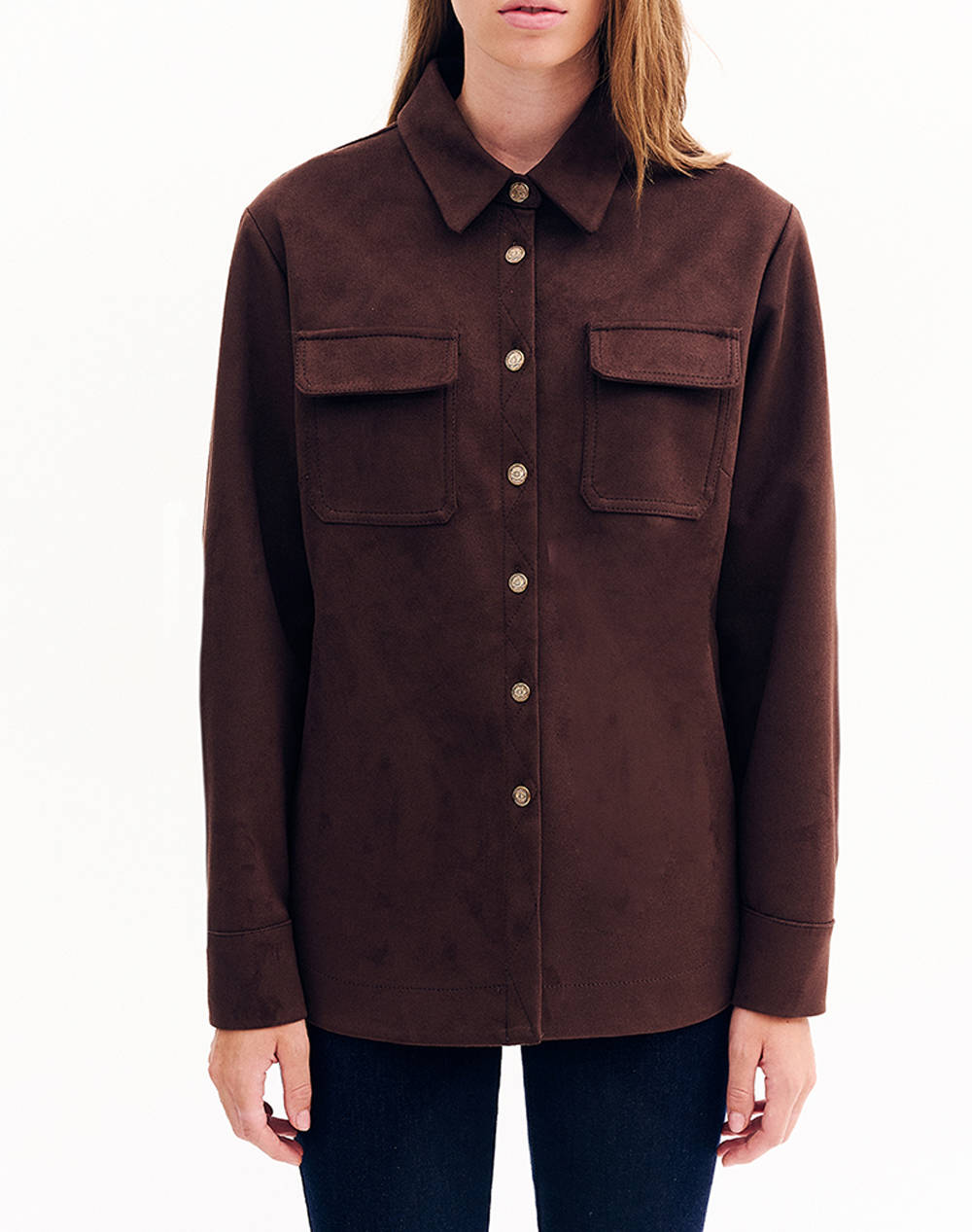 Γυναικείο πουκάμισο, μακρυμάνικο, με γιακά, πλαϊνές κοφτές τσέπες και patch τσέπες στο στήθος. Κλείνει μπροστά με κουμπιά. (Σύνθεση: 94% Πολυεστέρας, 6% Ελαστάνη)