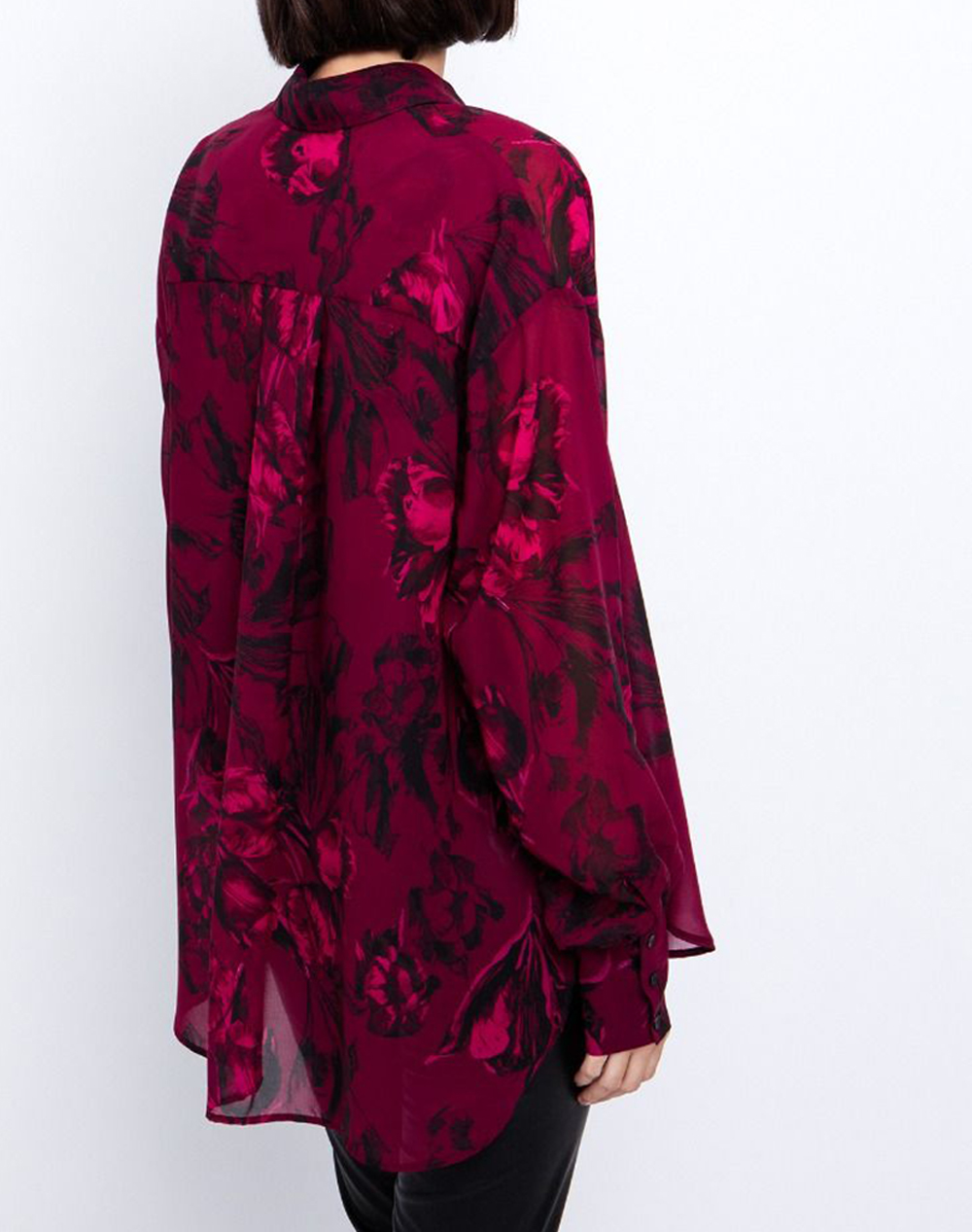 Γυναικείο πουκάμισο, σε άνετη γραμμή, με φλοράλ μοτίβο, ασσύμετρο σχέδιο και κλείσιμο μπροστά με κουμπιά. (Σύνθεση: 100% Πολυεστέρας)
