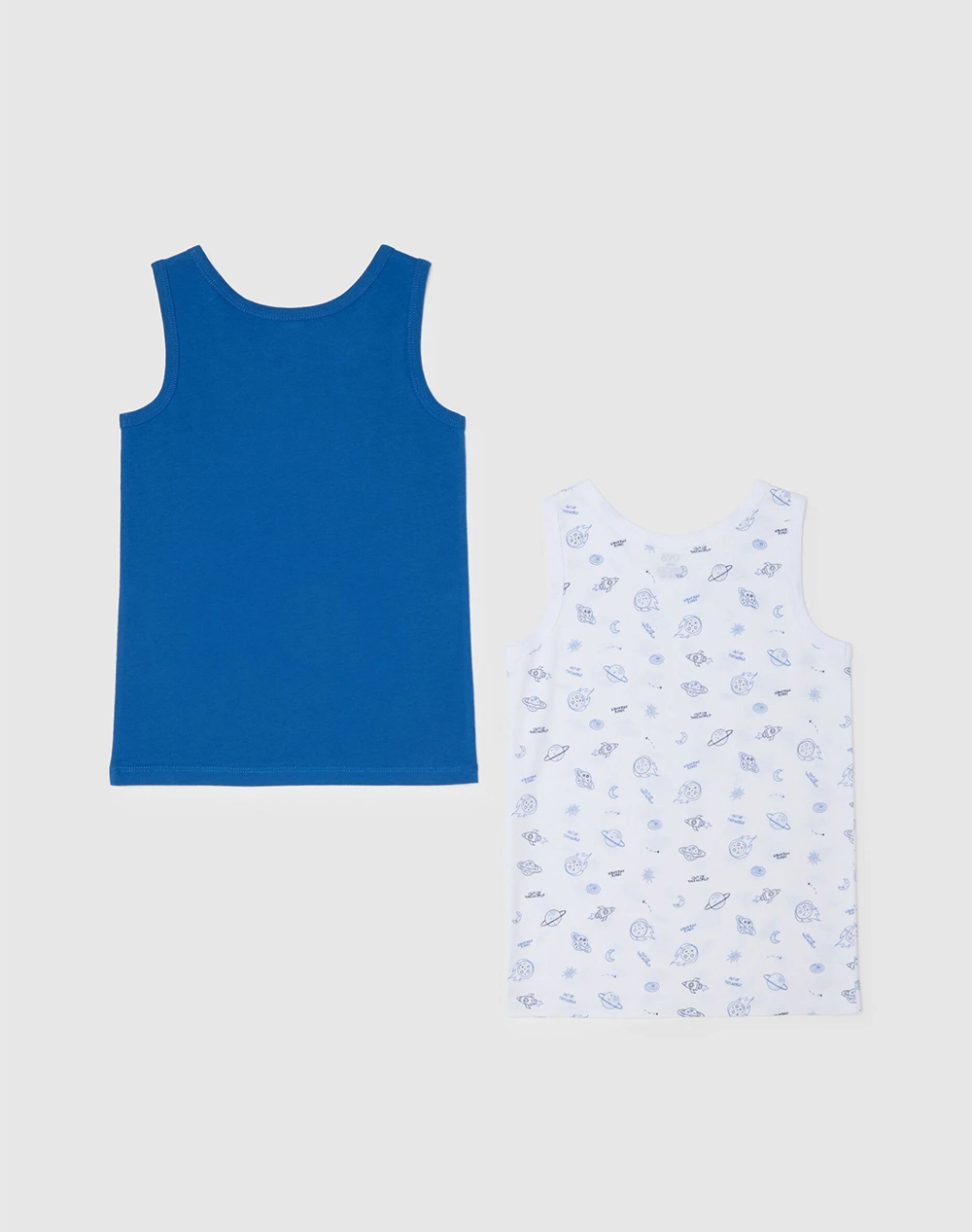 Παιδικό φανελάκι αμάνικο, με στρογγυλή λαιμόκοψη και all over σχέδια. Ηλικία: 3 - 10 ετών. (Σύνθεση: 100% Βαμβάκι)