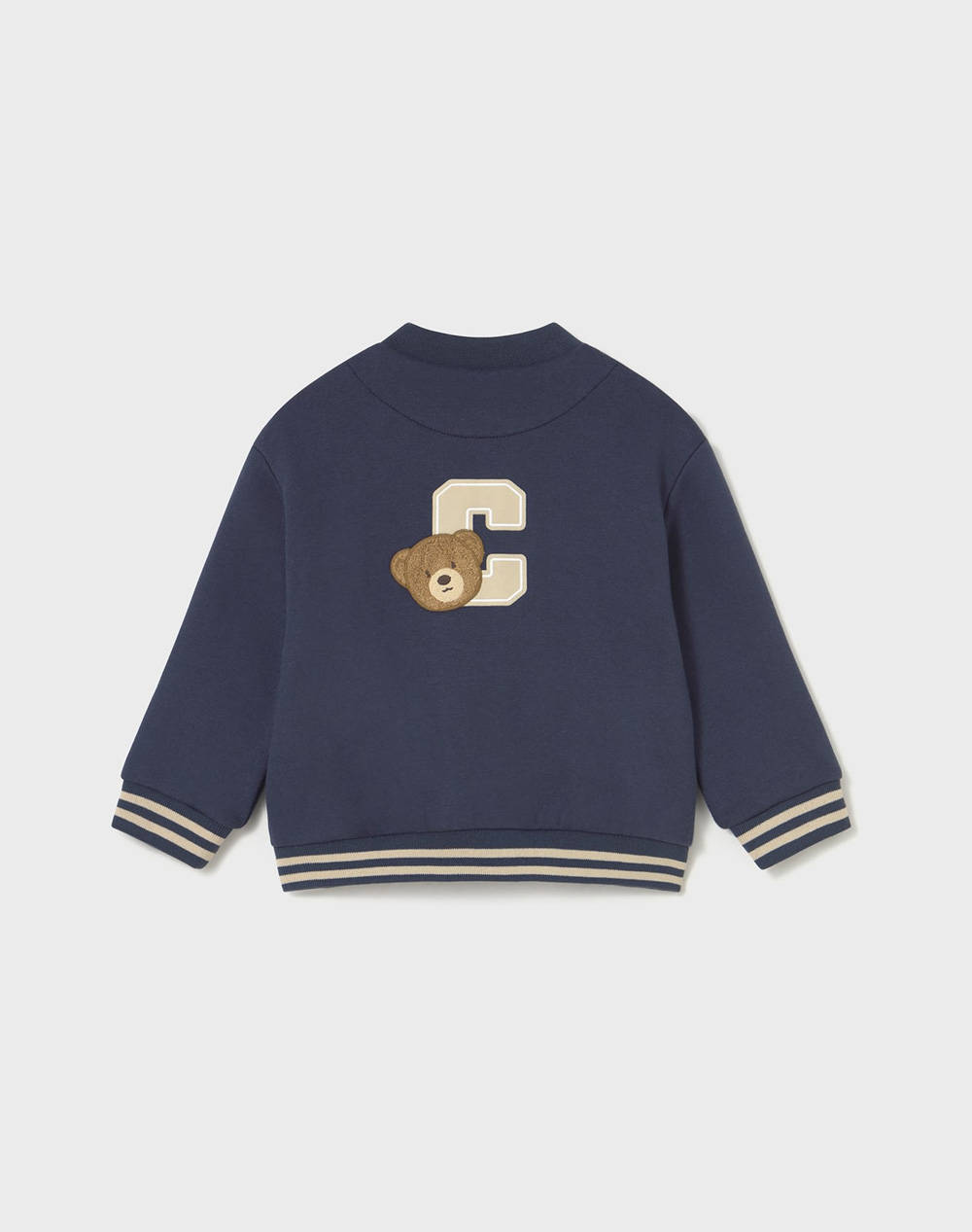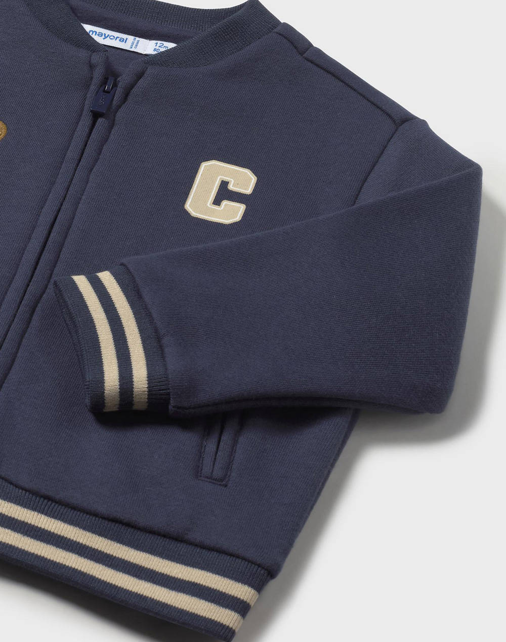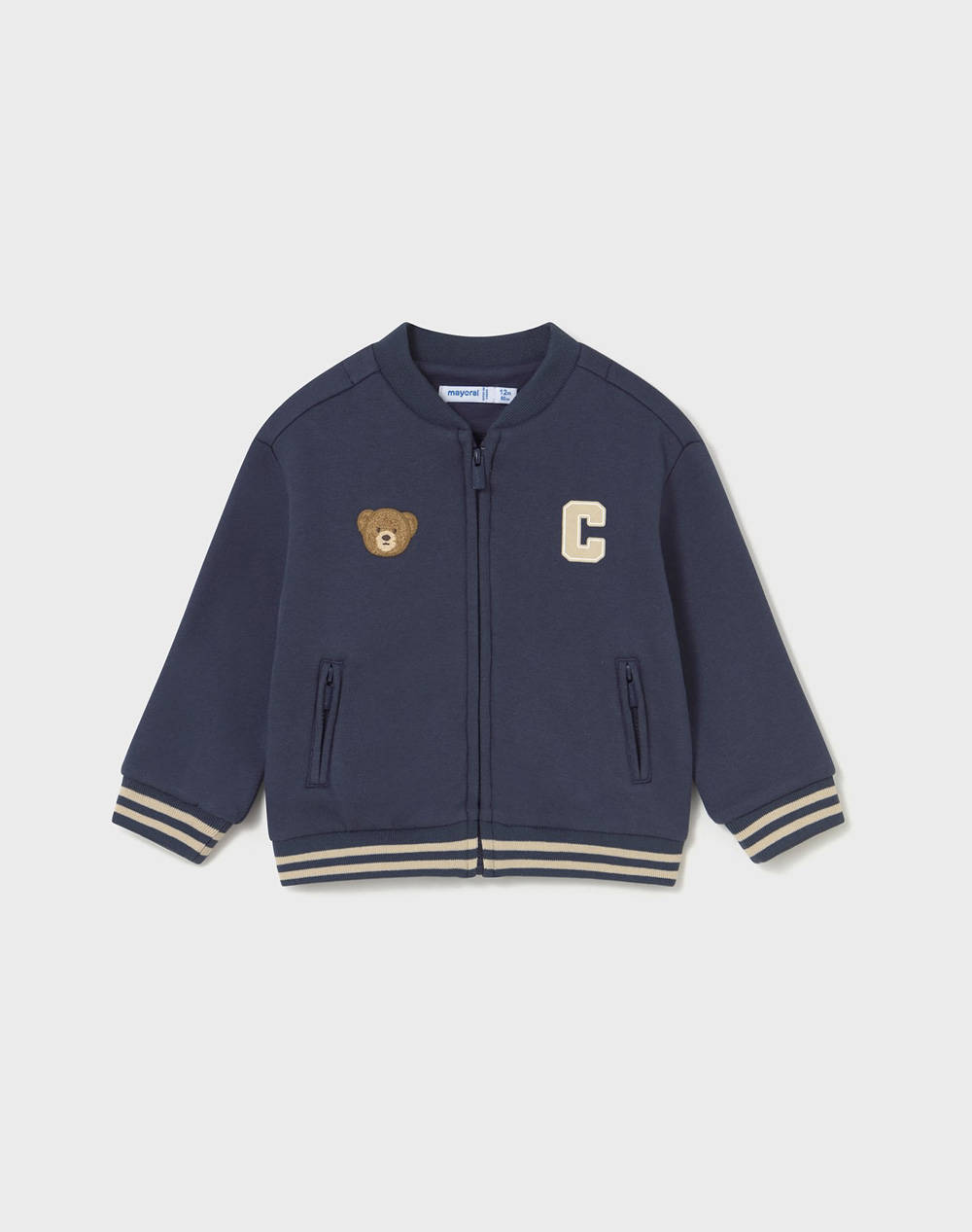 Βρεφική ζακέτα, μονόχρωμη, μακρυμάνικη, με κέντημα στο στήθος και στην πλάτη, τσέπες και κλείσιμο με φερμουάρ.(Σύνθεση:51% Πολυεστέρας, 48% Βαμβάκι, 1% Ελαστομερής πολυουρεθάνη)