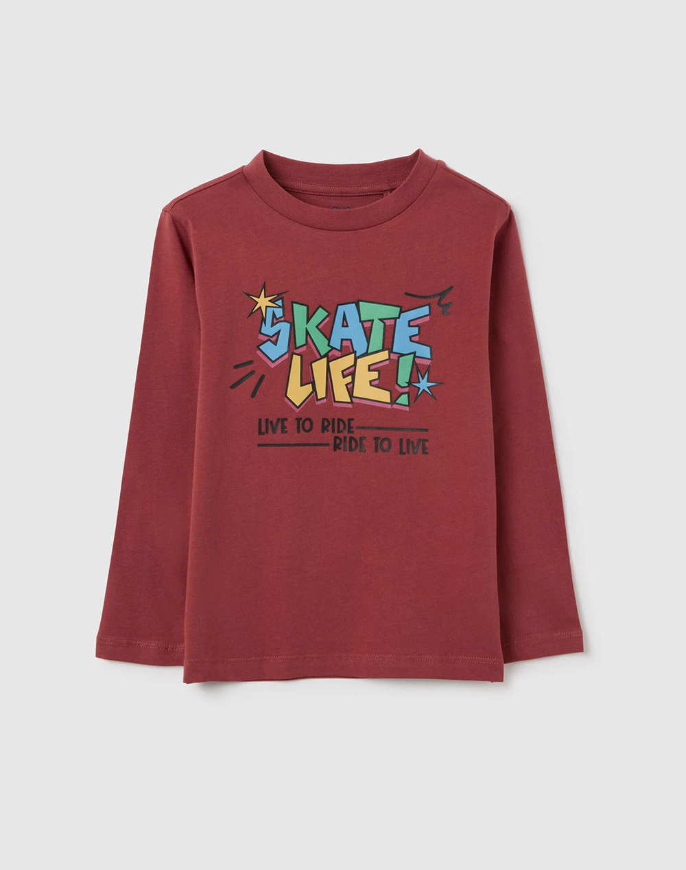 Παιδικό t-shirt, σε κανονική γραμμή, μακρυμάνικο, με στάμπα μπροστά και στρογγυλή λαιμόκοψη. Ηλικία: 3 - 10 Ετών (Σύνθεση: 100% Βαμβάκι)