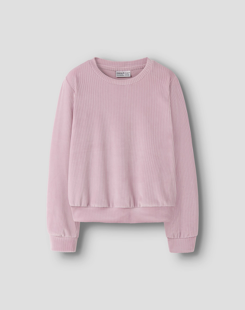 Παιδική μπλούζα, σε κανονική γραμμή, μακρυμάνικη, με βελούδινή υφή και στρογγυλή λαιμόκοψη. Ηλικία: 8 - 14 Ετών.(Σύνθεση: 95% Πολυεστέρας, 5% Ελαστάνη)