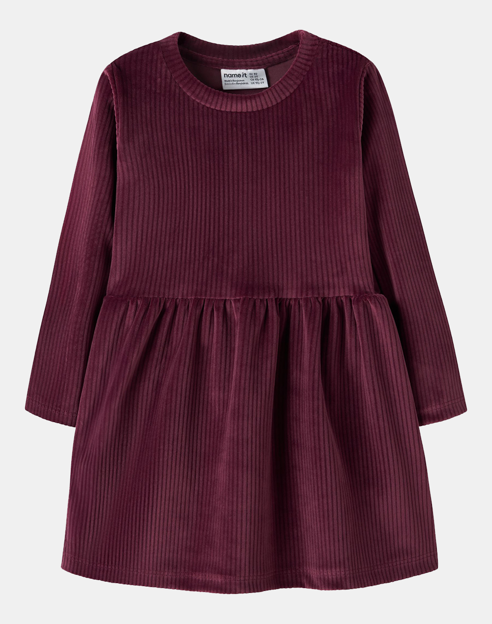 Παιδικό φόρεμα, σε κανονική γραμμή, μακρυμάνικο, με στρογγυλή λαιμόκοψη και βελούδινη ύφανση. Ηλικία: 2 - 7 ετών. (Σύνθεση: 95% Πολυεστέρας, 5% Ελαστάνη)