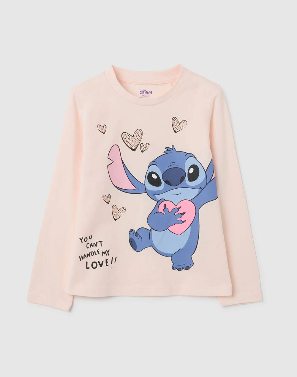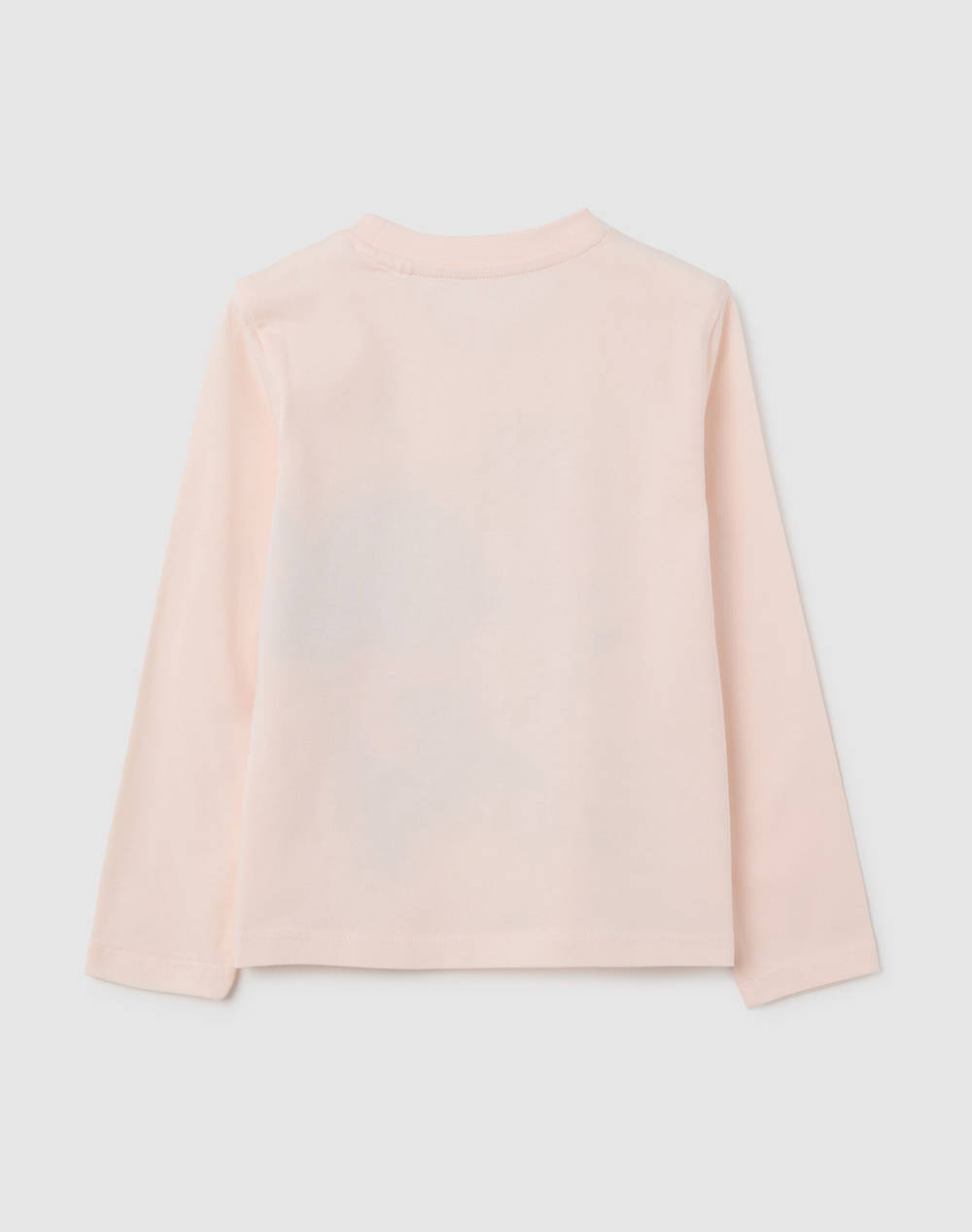 Παιδική μπλούζα, μονόχρωμη, μακρυμάνικη, με στάμπα και στράς μπροστά και στρογγυλή λαιμόκοψη.(Σύνθεση: 95% Βαμβάκι, 5% Ελαστάνη)