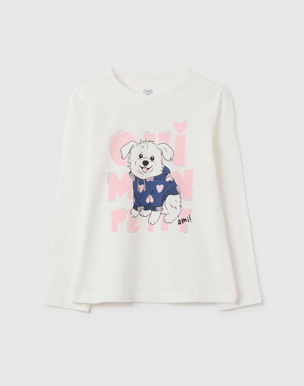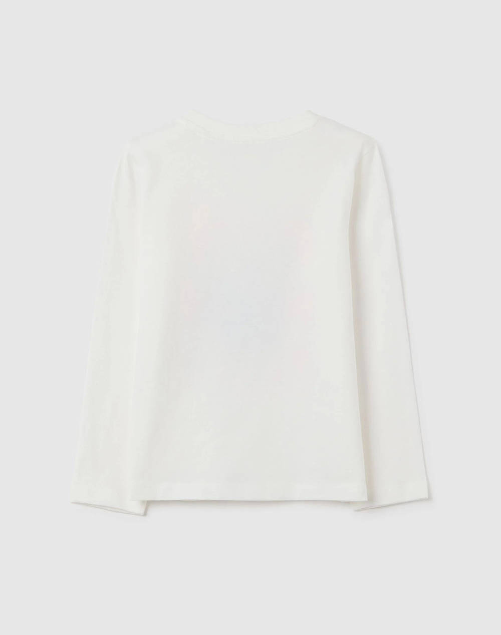 Παιδική μπλούζα, μονόχρωμη, μακρυμάνικη, σε κανονική γραμμή, με στάμπα και στράς μπροστά και στρογγυλή λαιμόκοψη. (Σύνθεση: 100% Βαμβάκι)