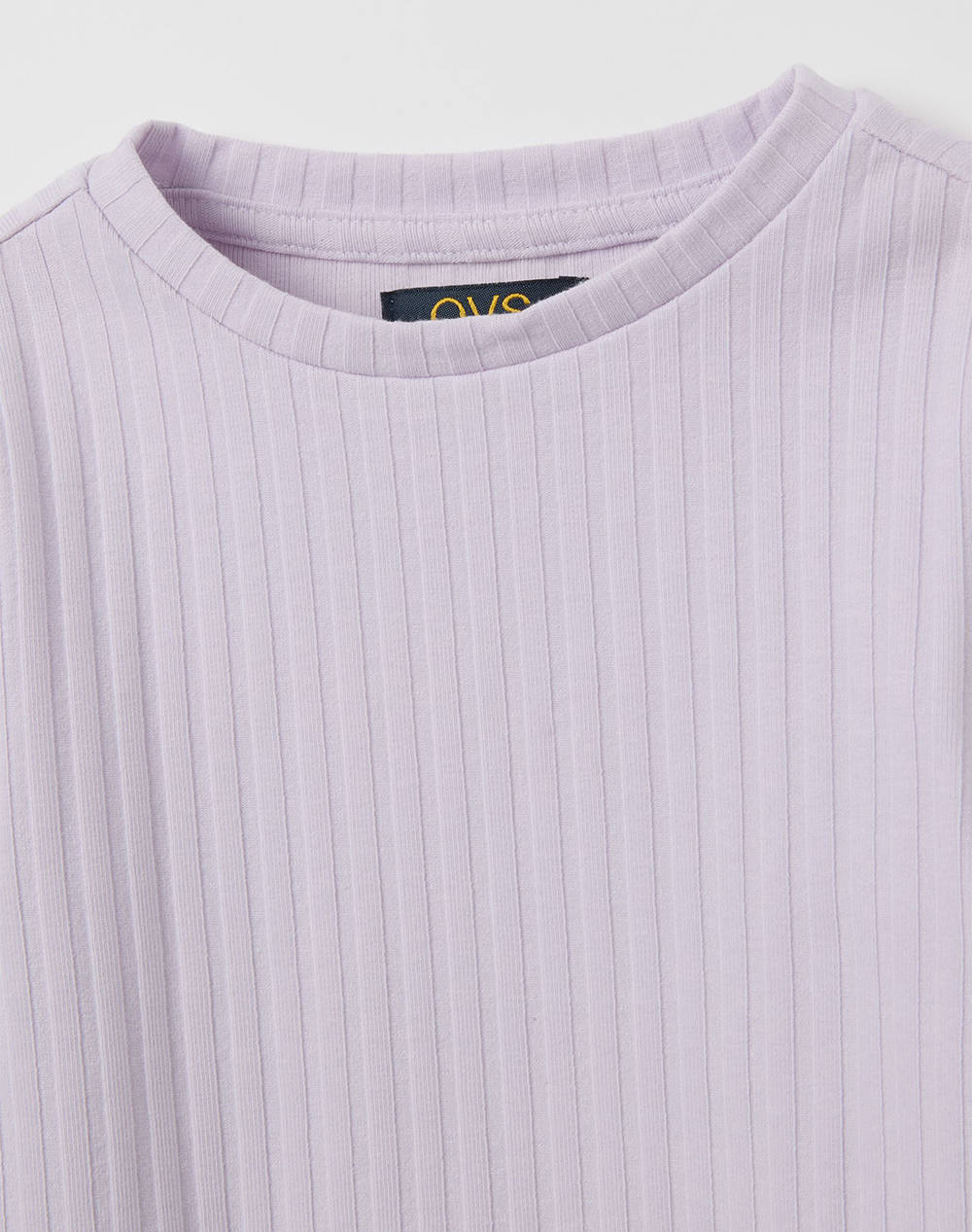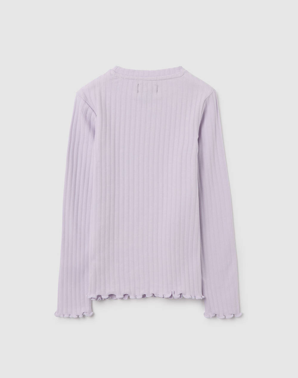 Παιδική μπλούζα, μονόχρωμη, μακρυμάνικη, σε κανονική γραμμή, με ριπ ύφανση και στρογγυλή λαιμόκοψη. (Σύνθεση: 95% Βαμβάκι, 5% Ελαστάνη)