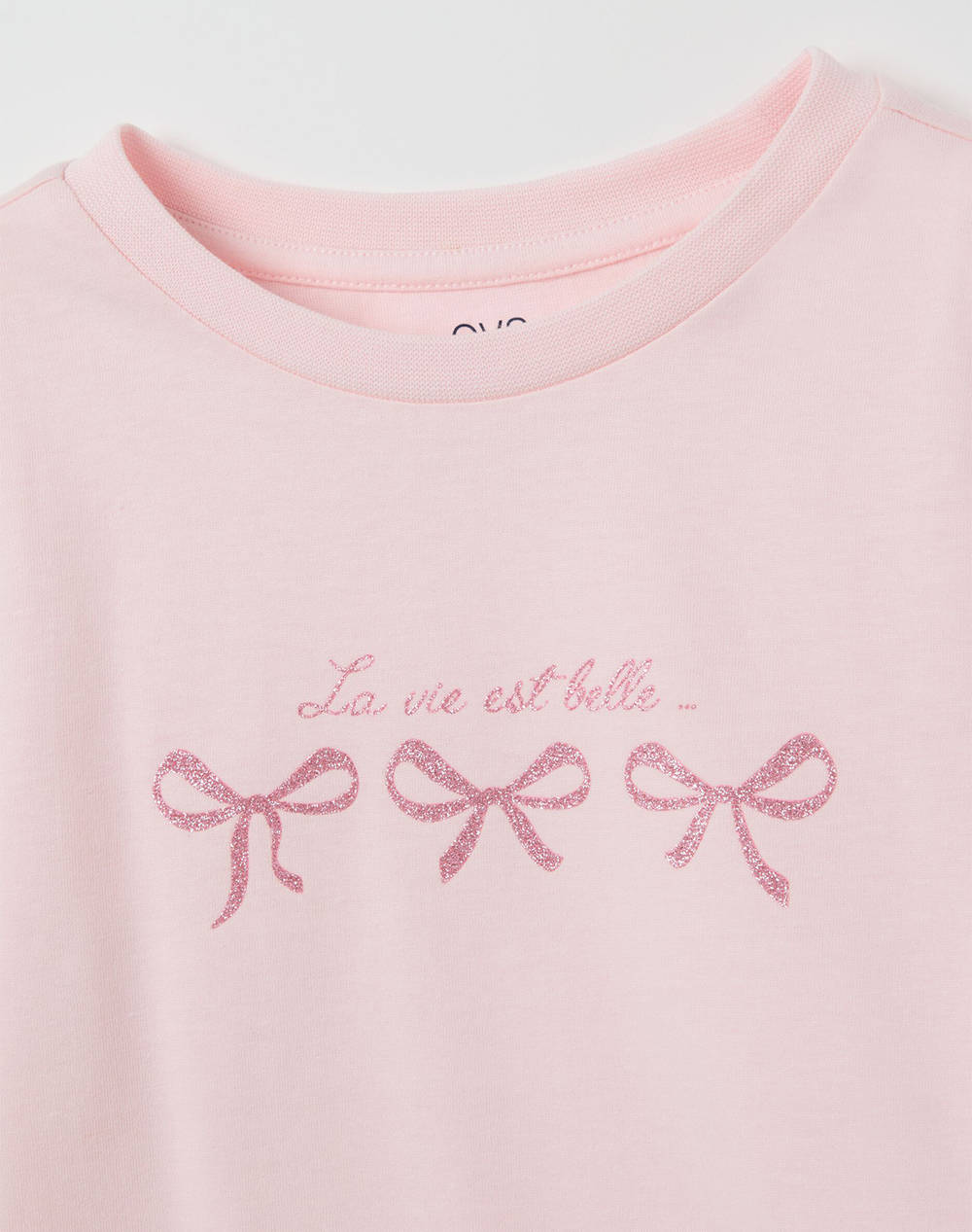 Παιδική μπλούζα, μονόχρωμη, μακρυμάνικη, σε κανονική γραμμή, με σχέδιο μπροστά και στρογγυλή λαιμόκοψη. (Σύνθεση: 100% Βαμβάκι)