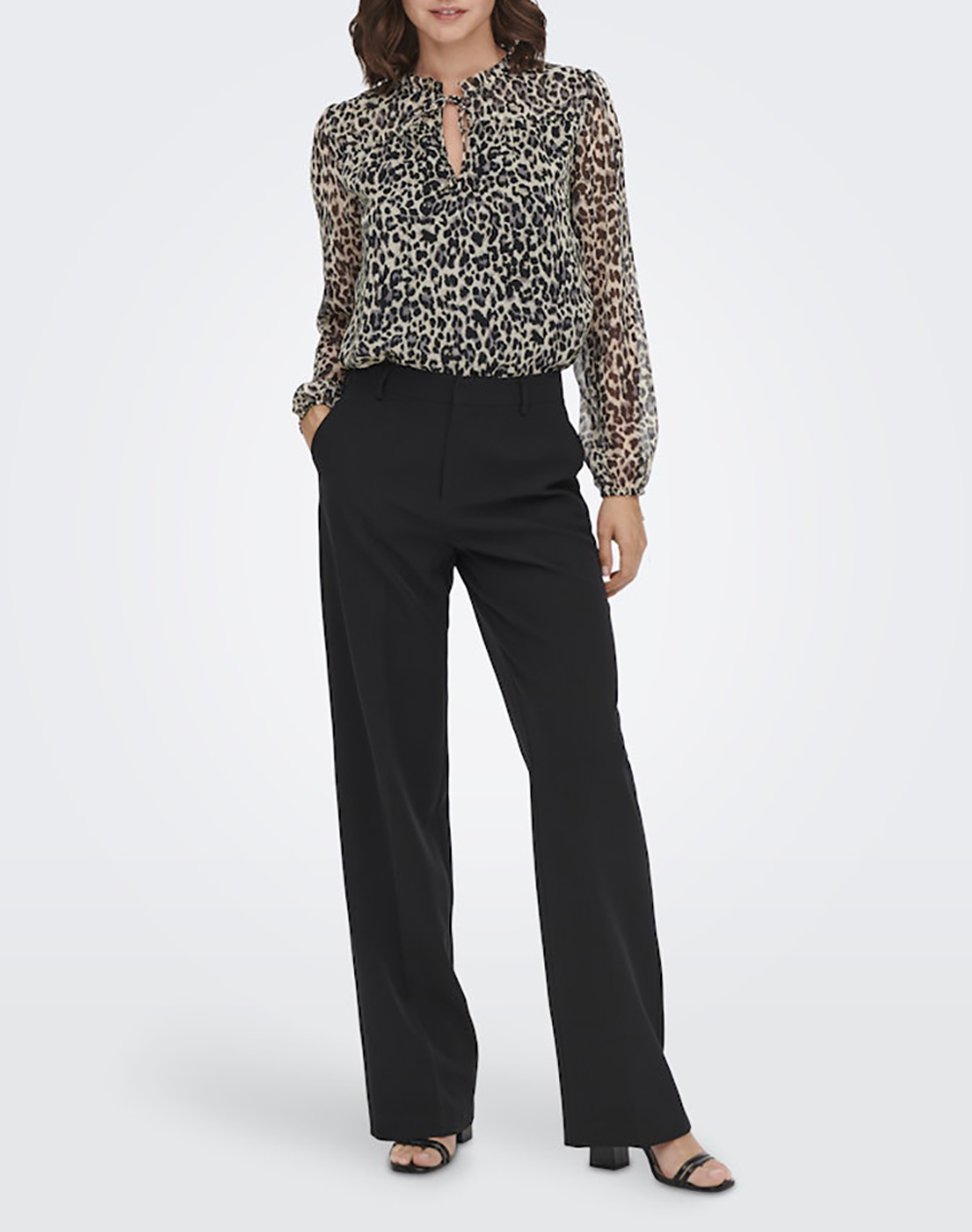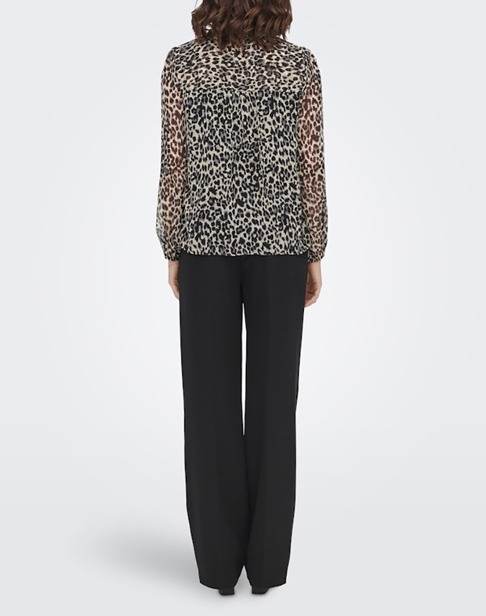 Women's blouse, regular fit, long sleeve, with "V" neckline with tie and animal print pattern. (Composition: 100% Polyester)