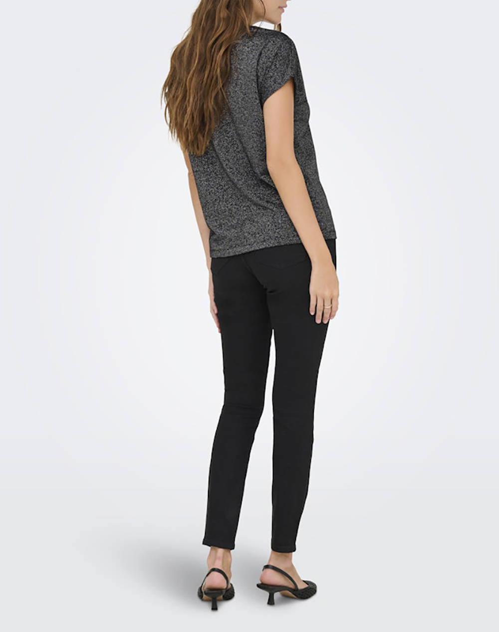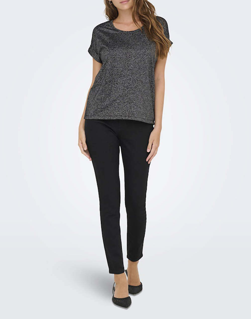 Women's t-shirt, regular fit, short sleeves, round neckline and lurex thread in the weave. (Composition: 75% Viscose, 11% Polyester, 11% Metallic Fibers, 3% Elastane)