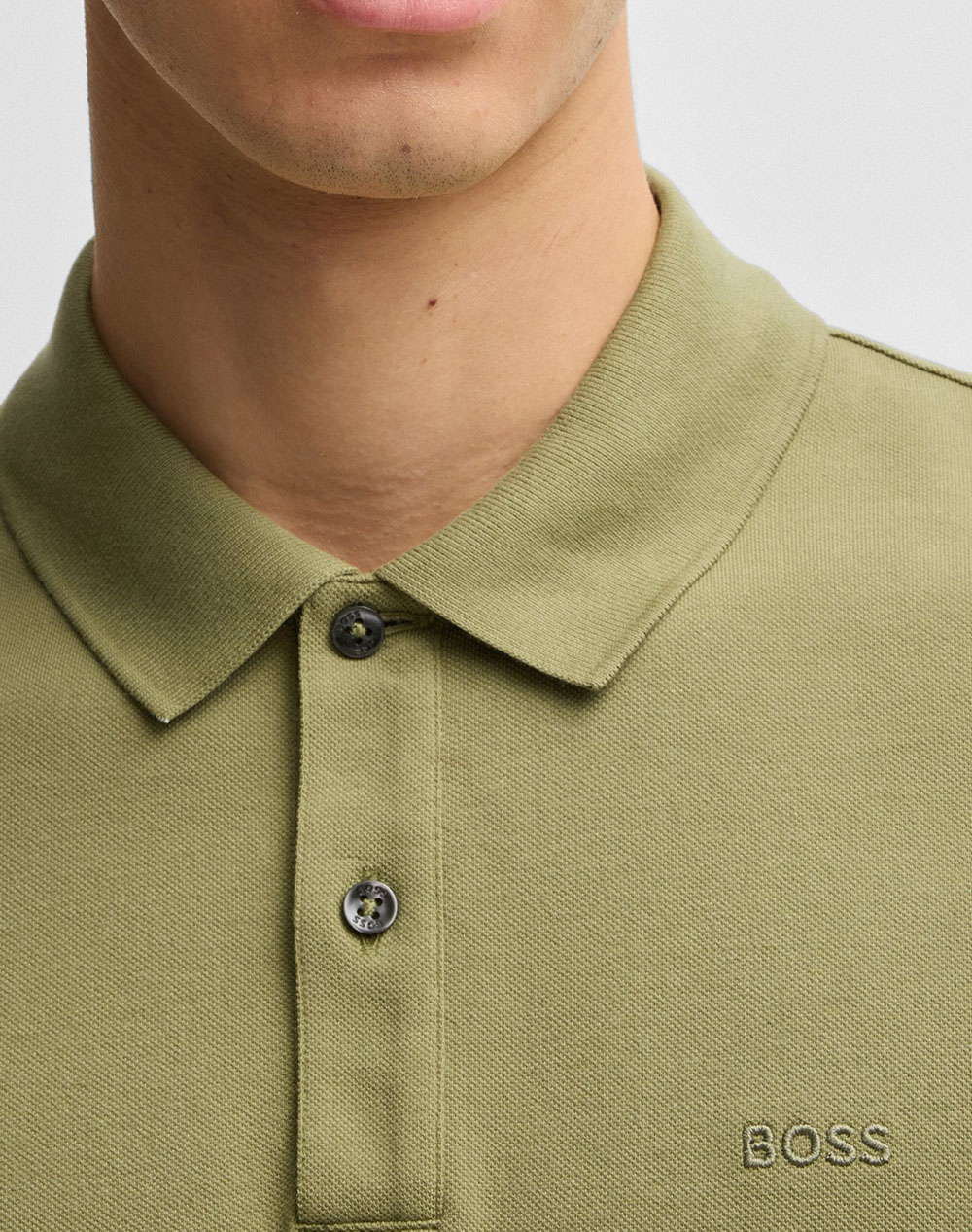 Men's polo shirt, regular fit, short sleeves, with buttons at the neckline and the company logo on the side. (Composition: 100% Cotton)