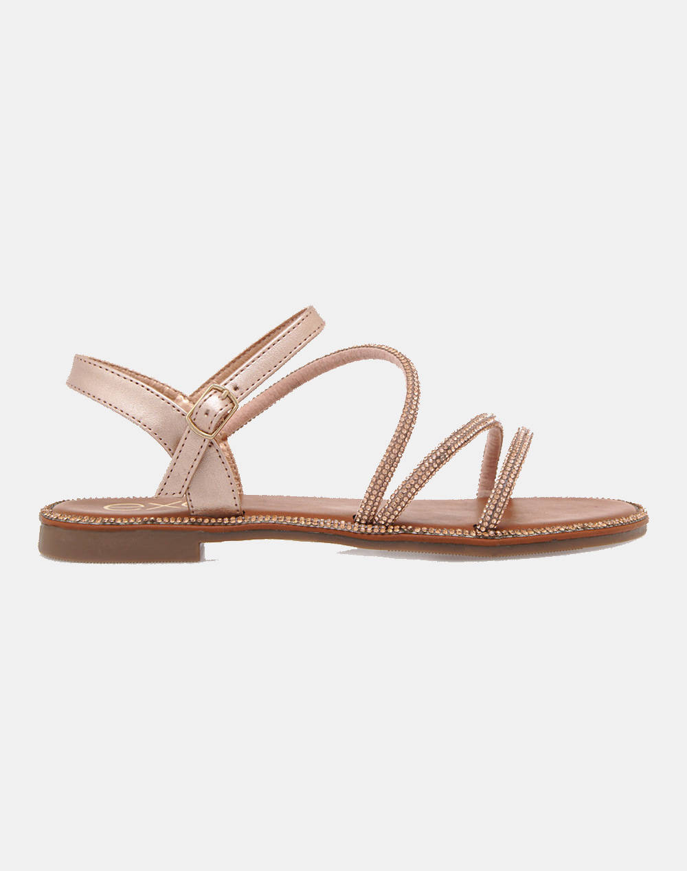 Women's self-coloured sandals with all-over strass straps. (Fabric composition: Faux Leather)