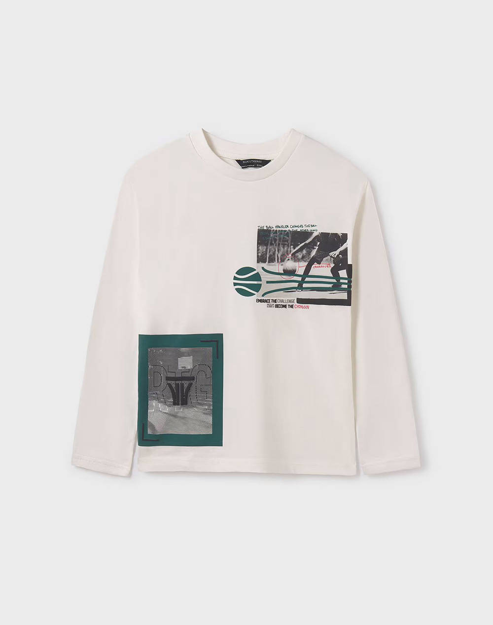 Kids' shirt for boys, long-sleeved, with a round neck and a print. (Composition: 100% Cotton)