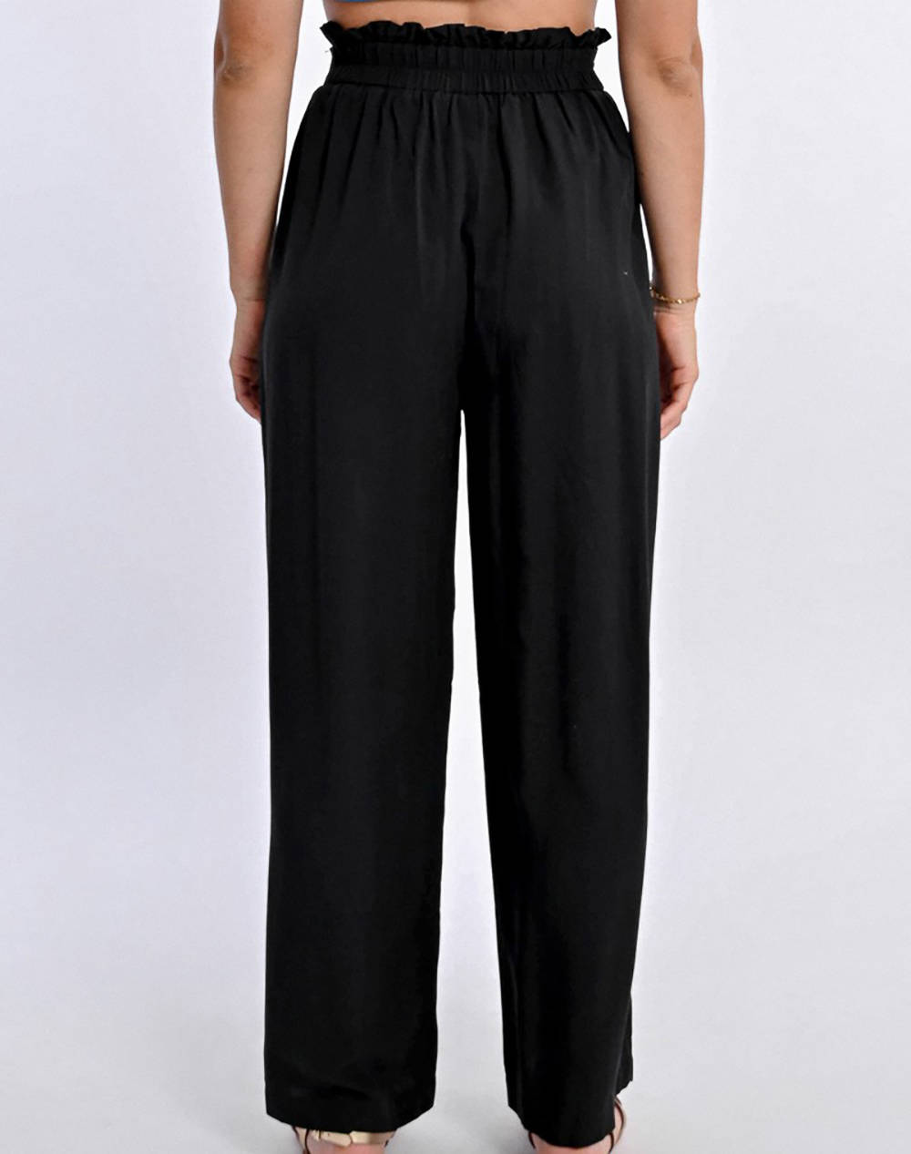 Women's trousers, wide-leg, high-waisted paper bag cut and elastic waist with tie. (Composition: 70% Viscose, 30% Lyocell)
