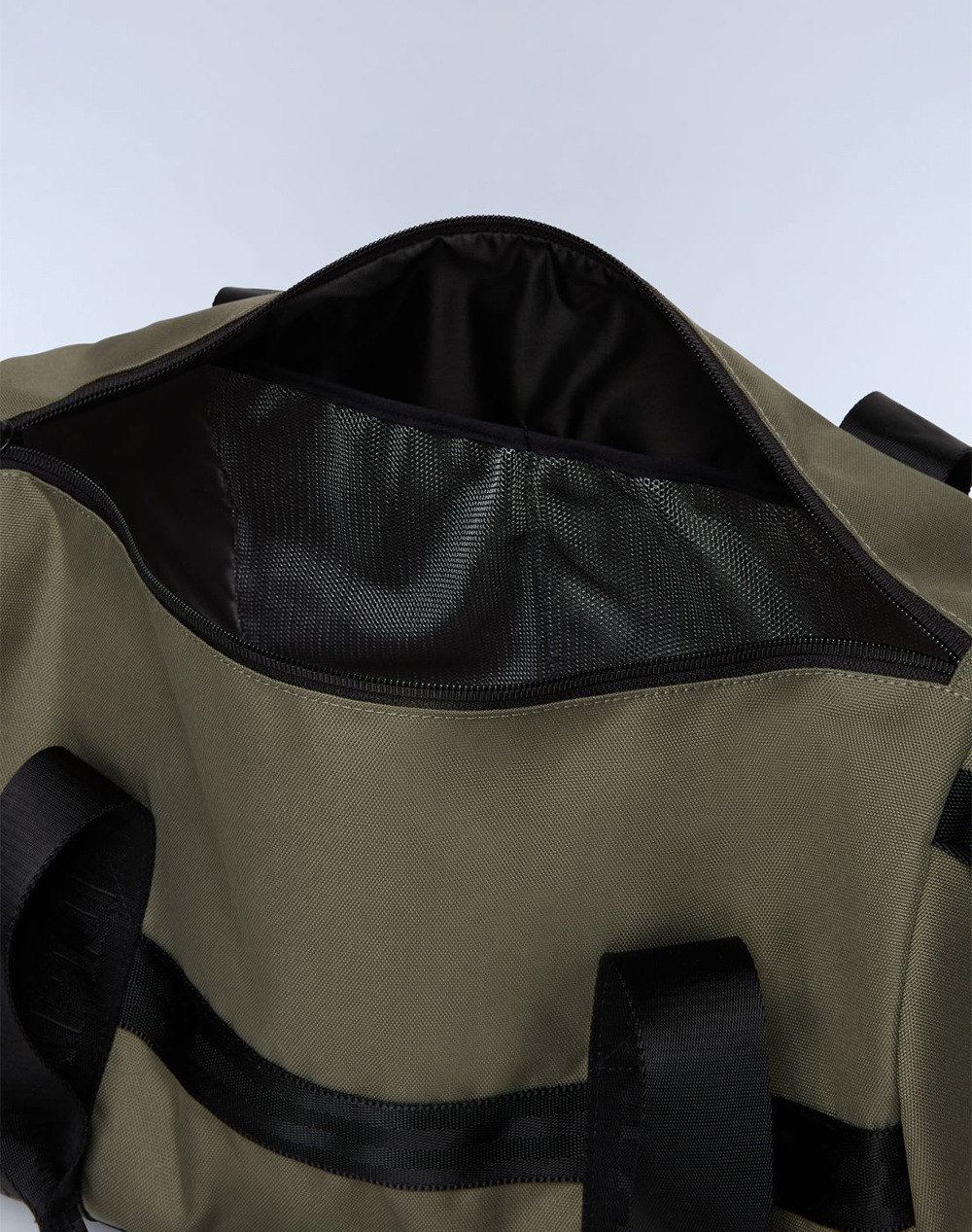 Travel bag, with two-way zipper closure, short carry handles and detachable/adjustable shoulder strap. (Composition: 100% Recycled PET Polyester)
