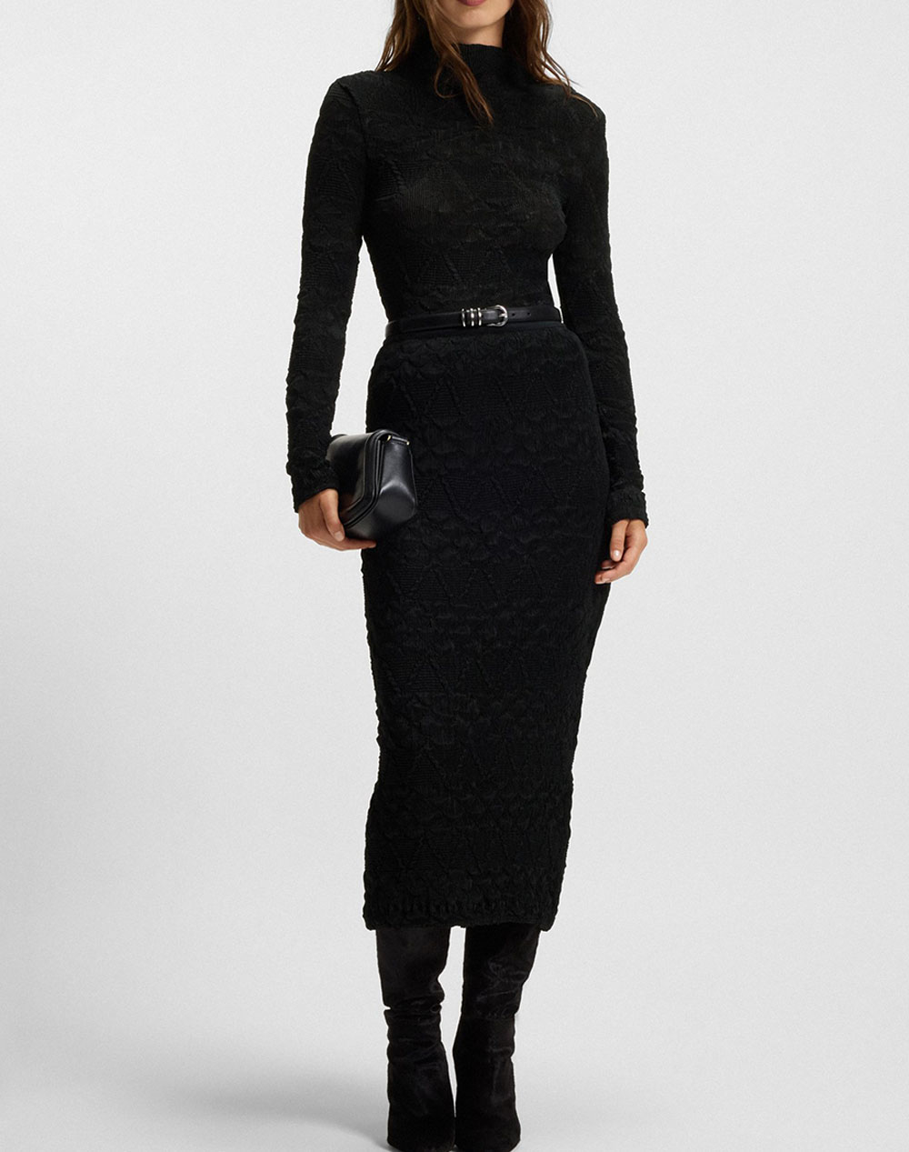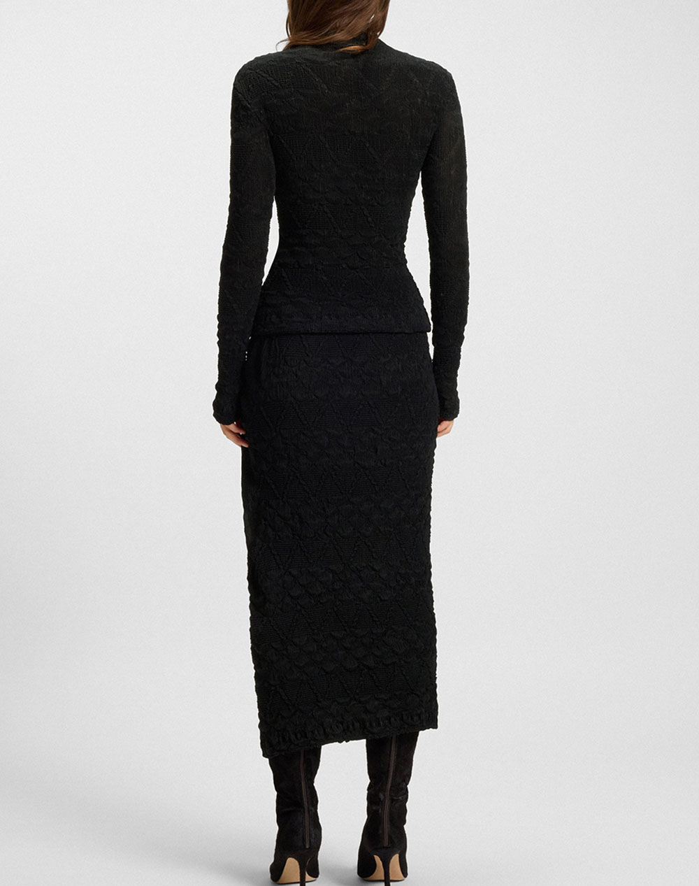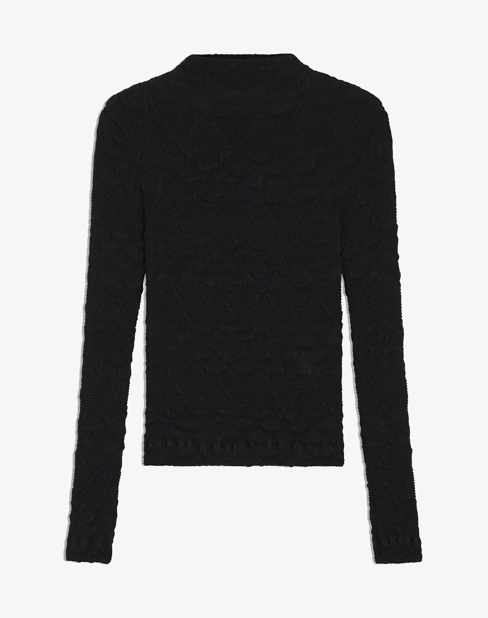 Women's blouse, slim fit, long sleeve, with mock neckline and geometric pleated design. (Composition: 100% Polyester)