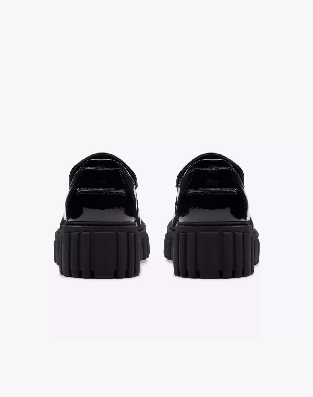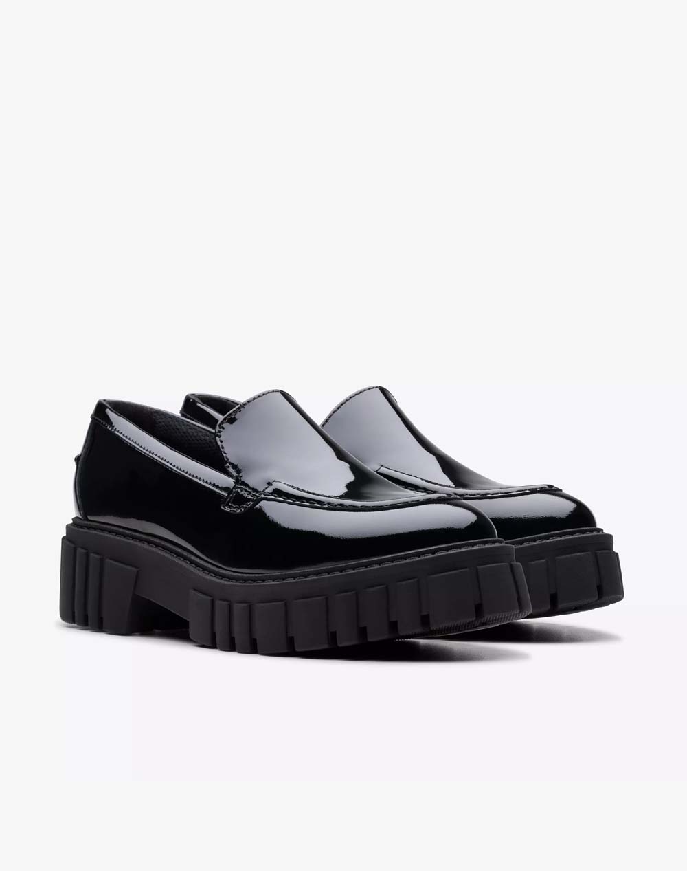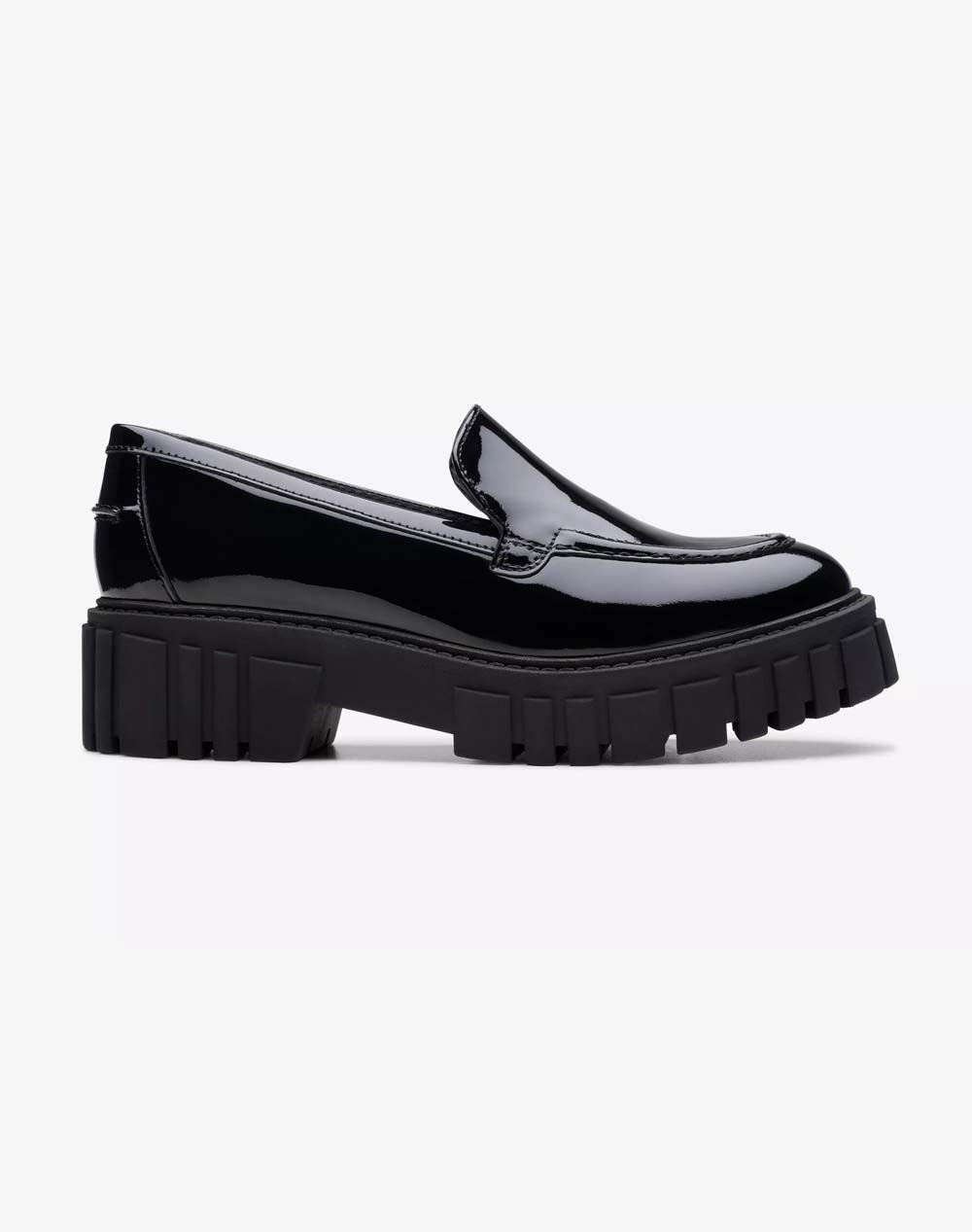 Women's loafers, with a round toe, patent leather look, soft sole and non-slip sole. Sole height; 4.5cm. (Composition: Leather)