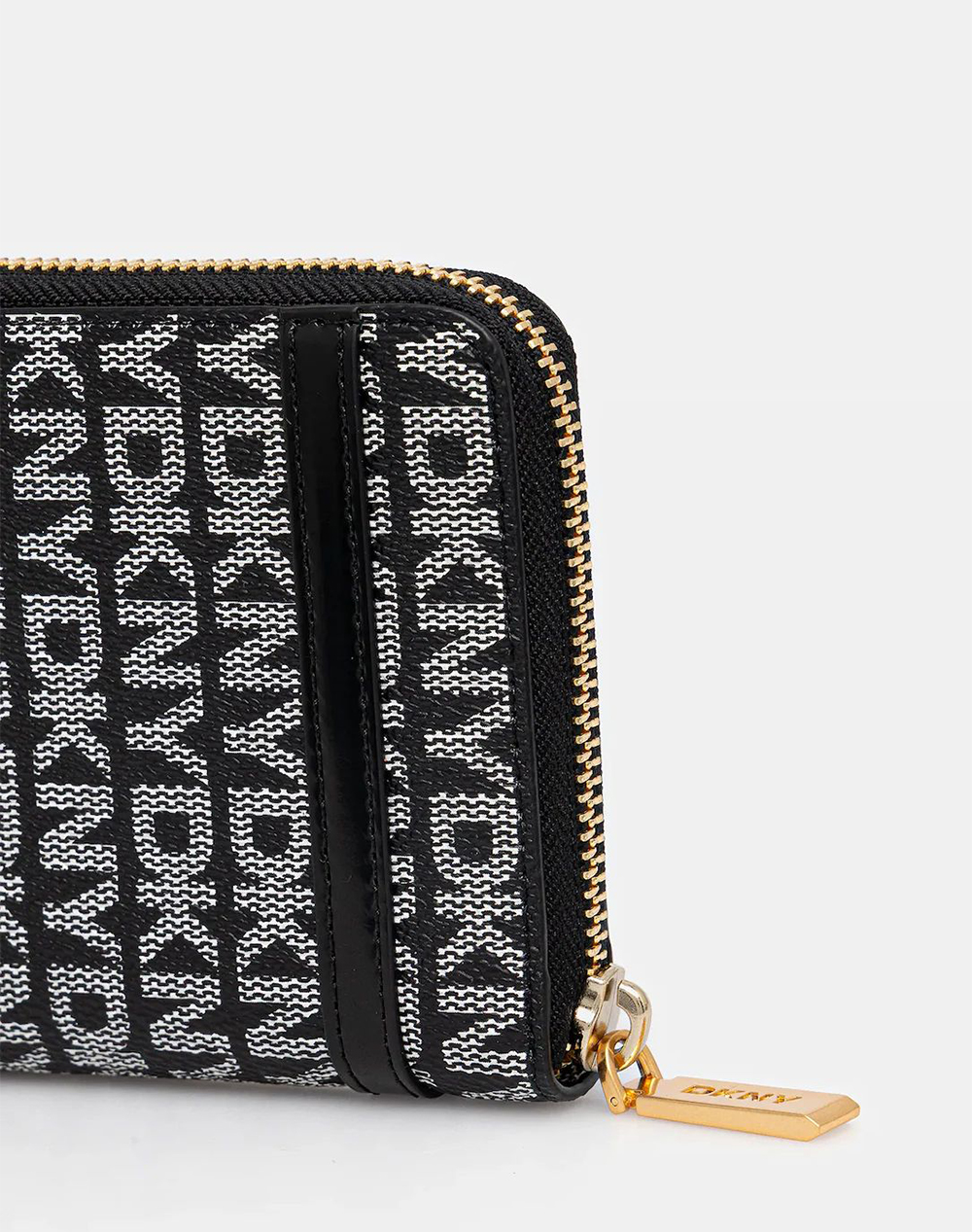 Women's wallet, with all over logo print, zipper closure and multiple interior pockets. Dimensions: 10.5 x 12.5cm. (Composition: Natural leather)