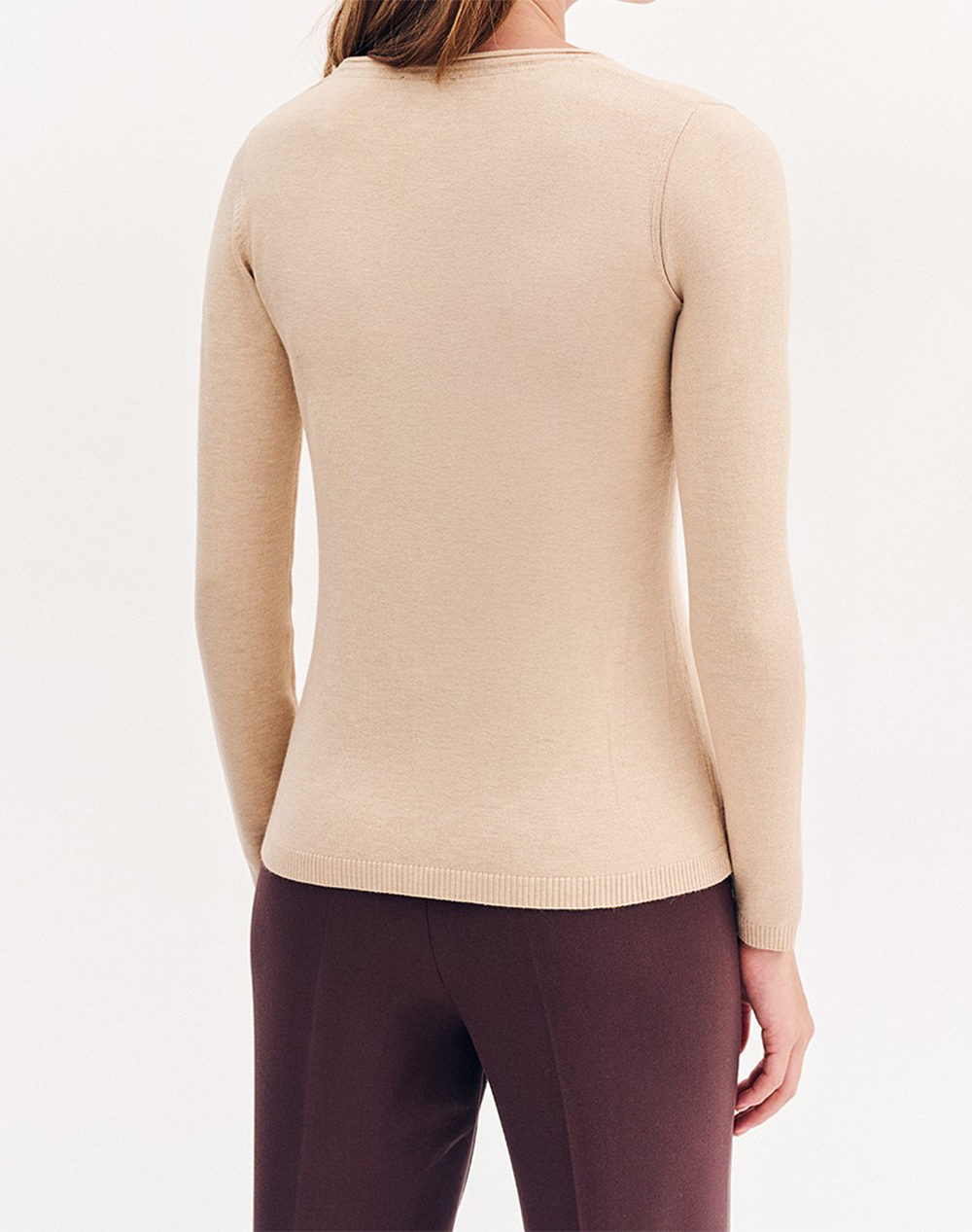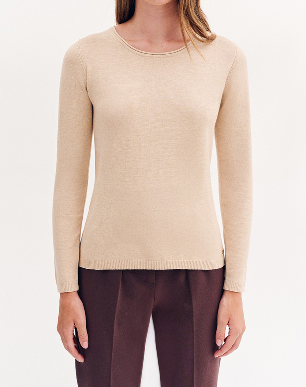 Women's sweater, regular fit, long sleeve, with round neckline and logo detail at the hem. (Composition: 80% Viscose, 20% Nylon)