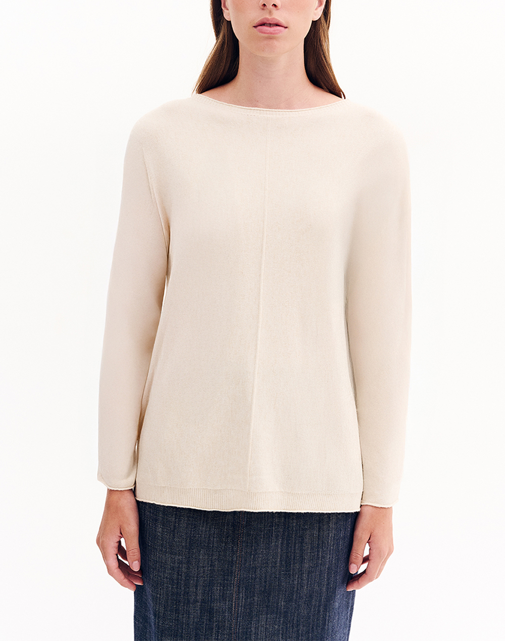 Women's knitted top, in a comfortable fit, long sleeves and with a round neckline. (Composition: 56% Viscose, 27% Polyester, 17% Nylon)