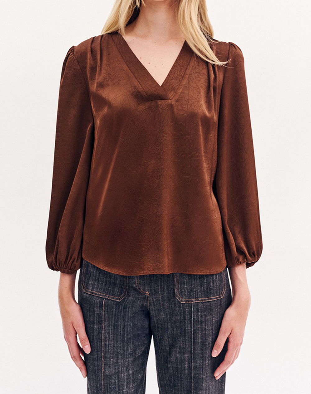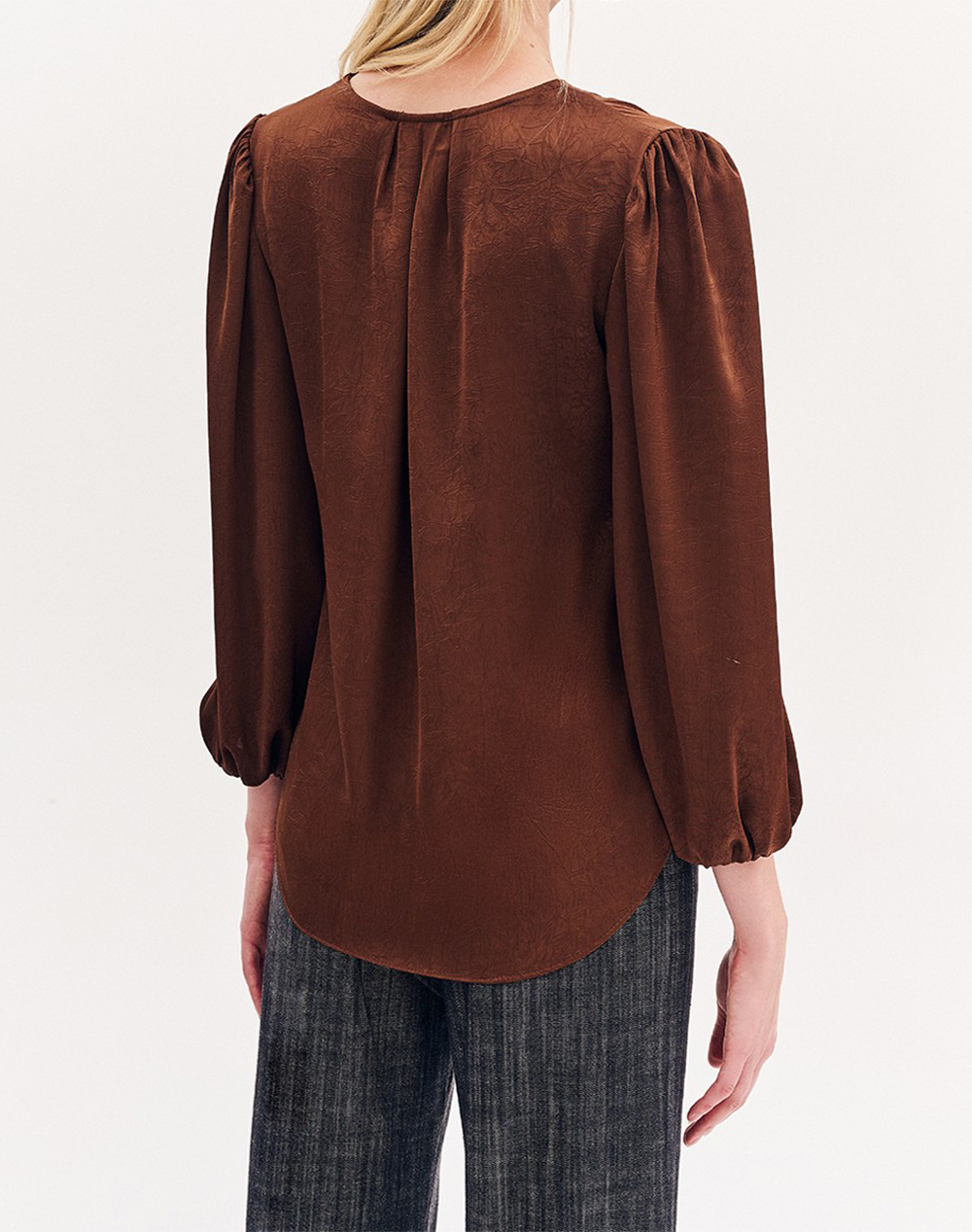 Women's satin blouse, long sleeves, with elastic cuffs, "V" neckline and solid color pattern, (Composition: 100% Polyester)