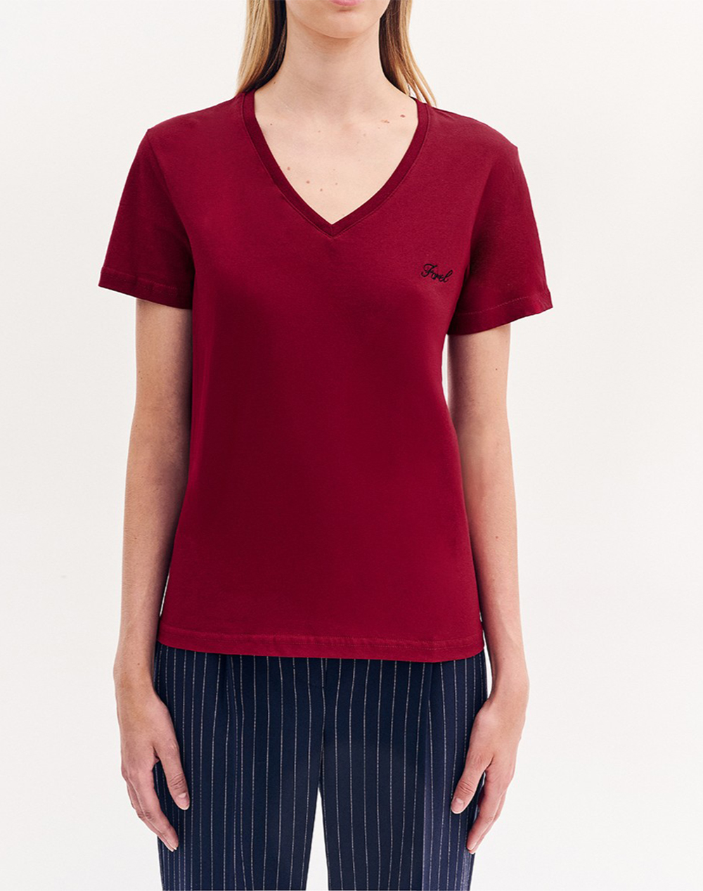 Women's t-shirt, regular fit, short sleeves, with "V" neckline and logo on the chest. (Composition: 100% Cotton)